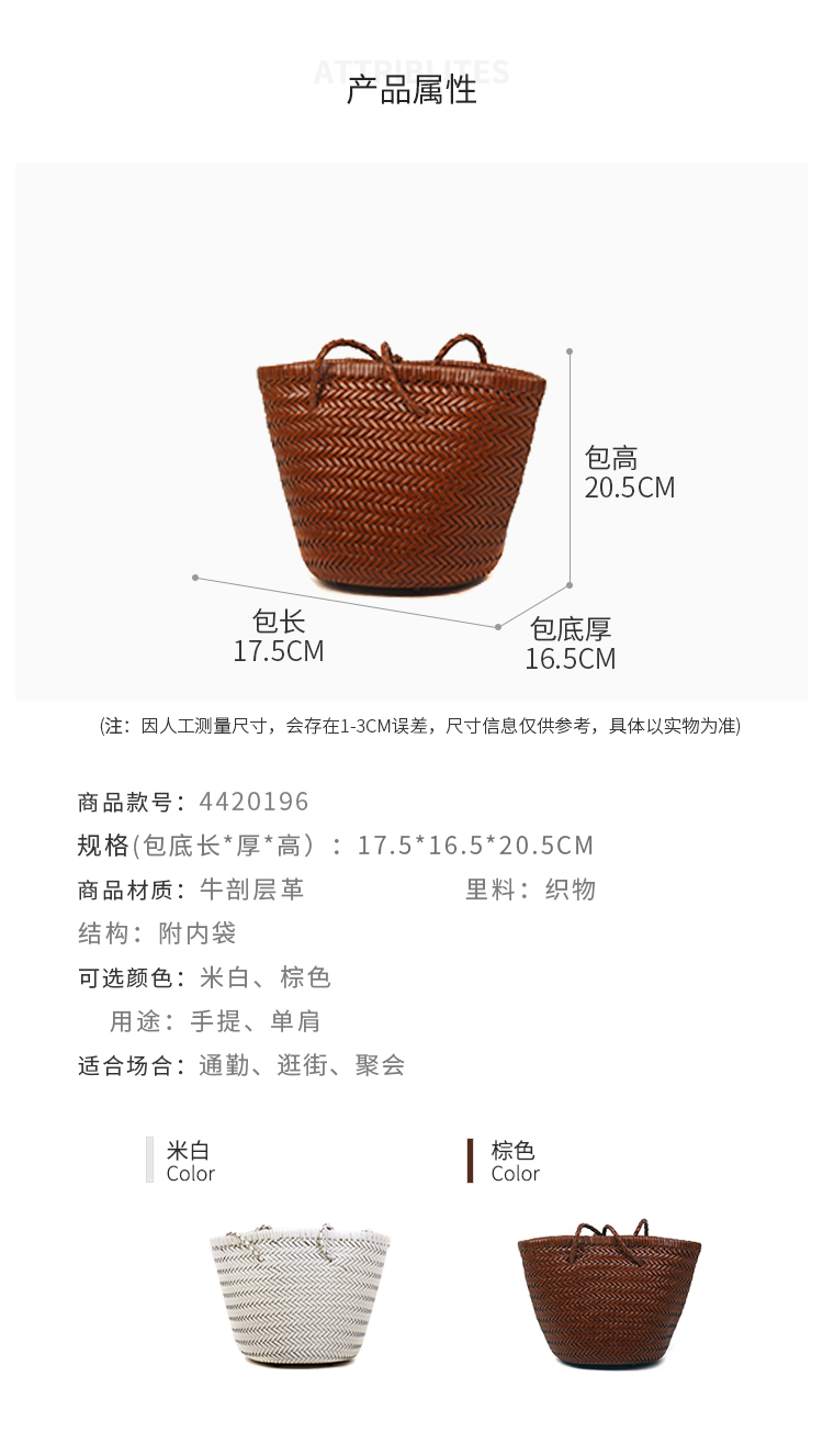 和诚行2026春季新款手提菜篮子法式复古手工编织水桶单肩包4420196