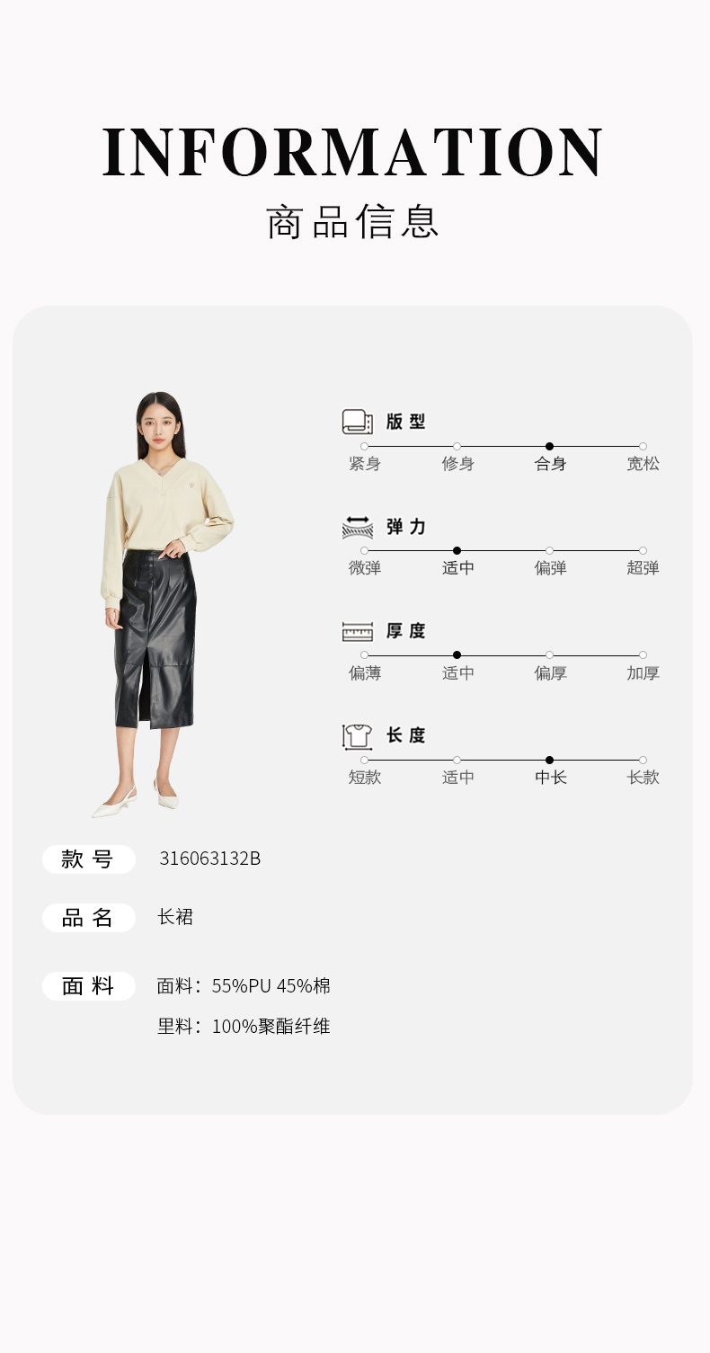 NUTS商场同款春秋款时尚甜酷气质皮裤半身裙女316063132B