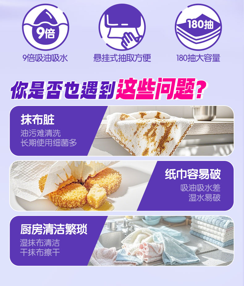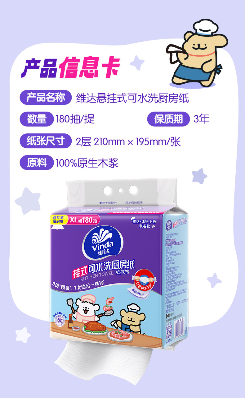 维达 悬挂式厨房抽纸180抽/提×6提/整箱 线条小狗联名 9倍瞬吸 48小时发货