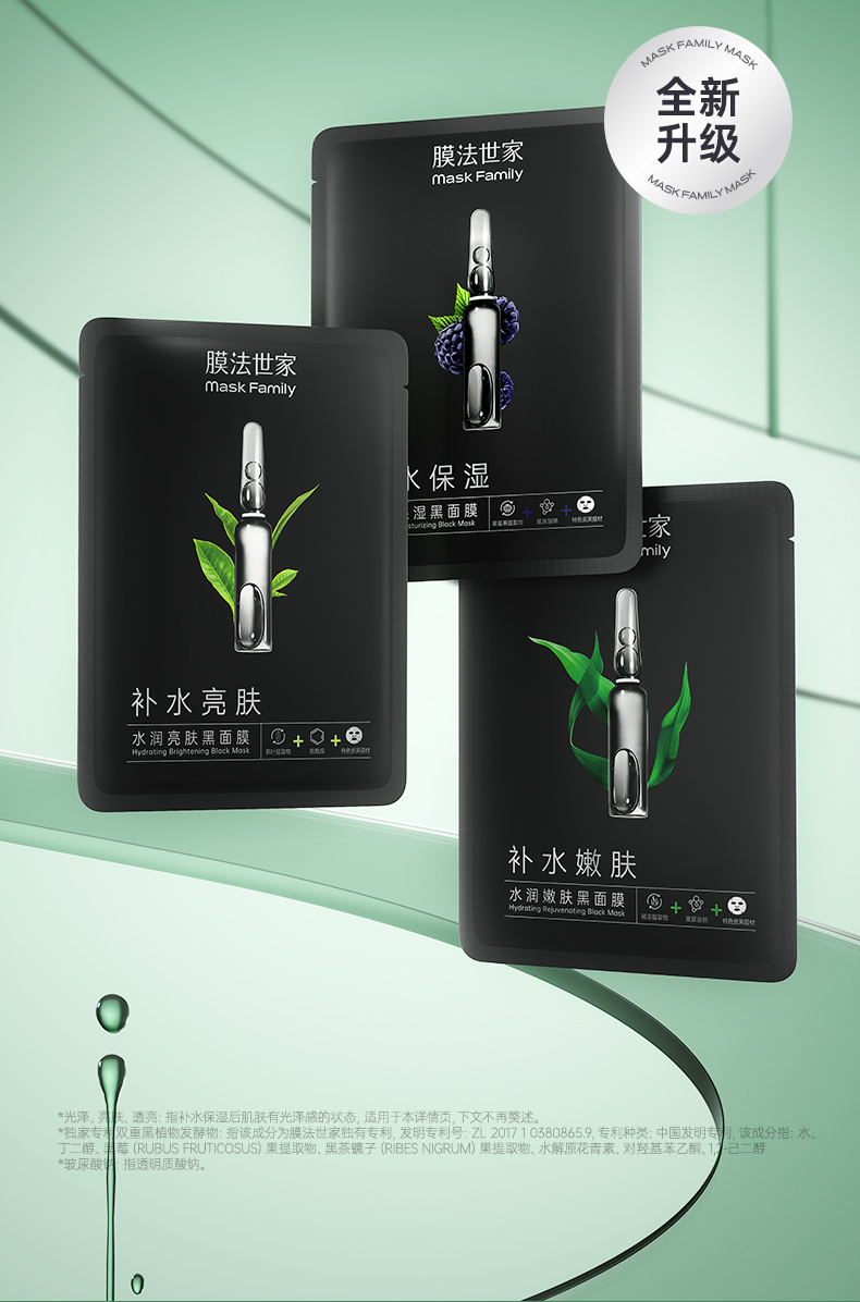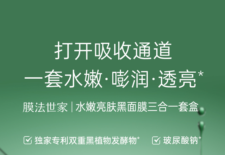 【水嫩保湿】膜法世家水嫩亮肤黑面膜三合一套装
