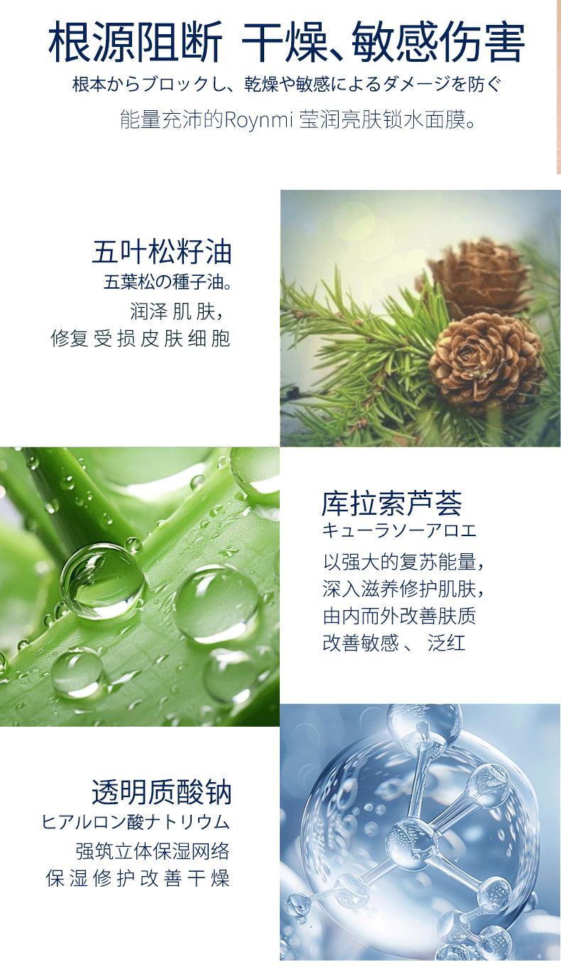 Roynmi空气面膜 专研紧致精华配方 分肤护理 协同增效 赋予肌肤弹嫩细滑,改善肌肤干燥、缺水状态 紧致润滑肌肤,抹去时光在脸上留下的痕迹,焕发动人光采!#Z