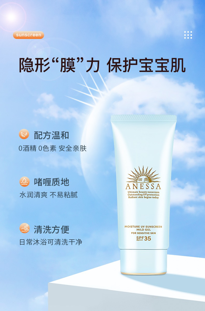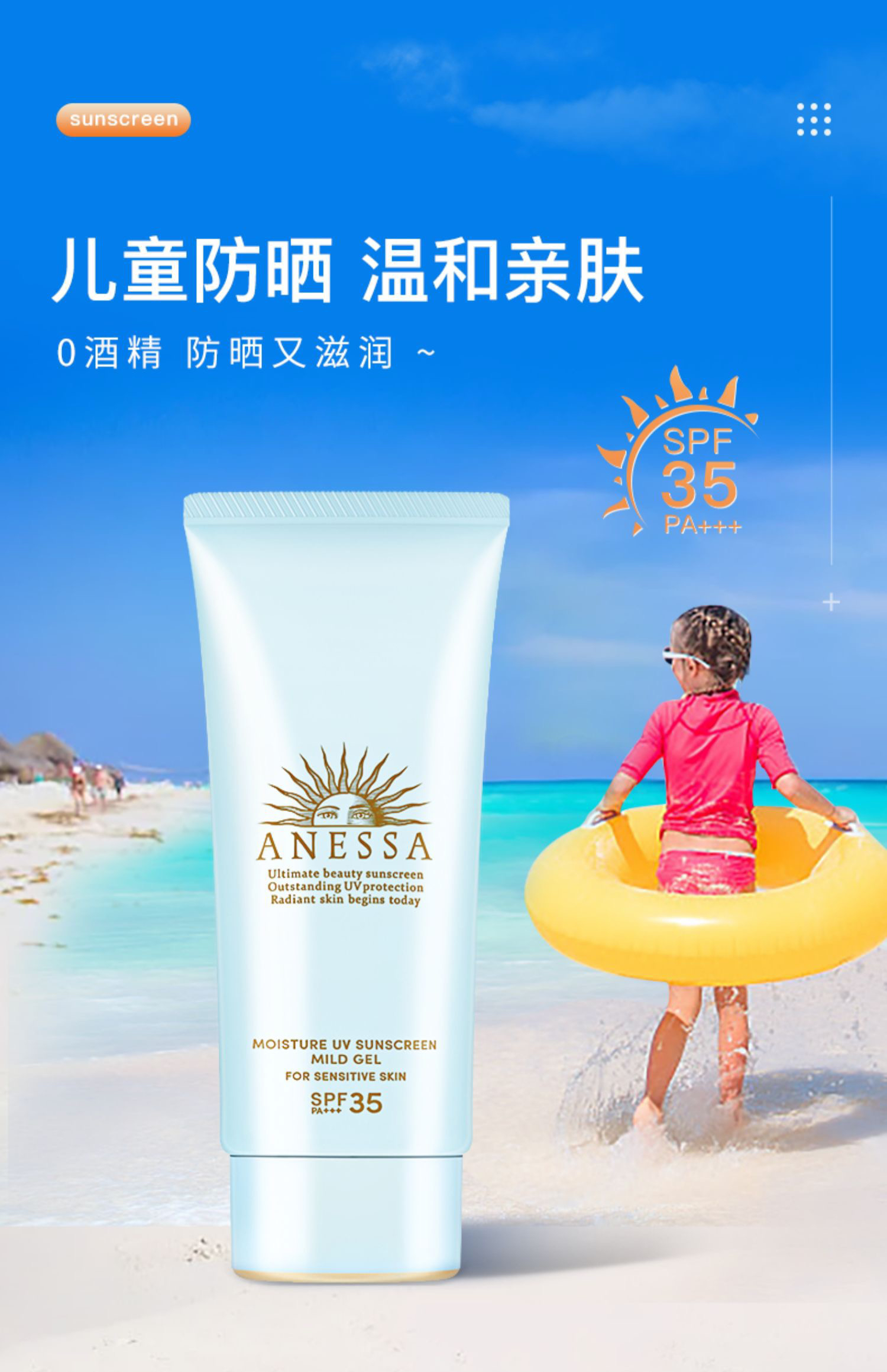安耐晒防晒 儿童敏感肌 安热沙小蓝瓶日本防晒乳防水防汗防紫外线 90ml spf30