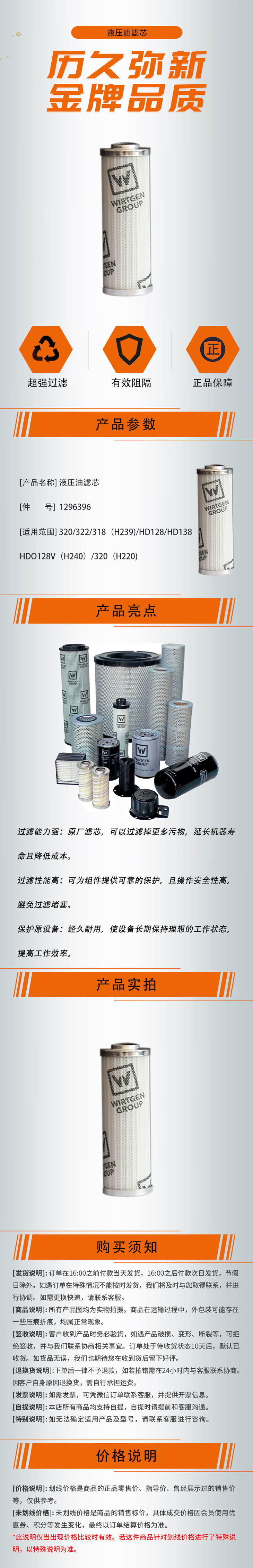 【液压油滤芯1296396】 适用于318/320/322(H239)/HD128/HD138/HDO128V(H240)/320(H220)
