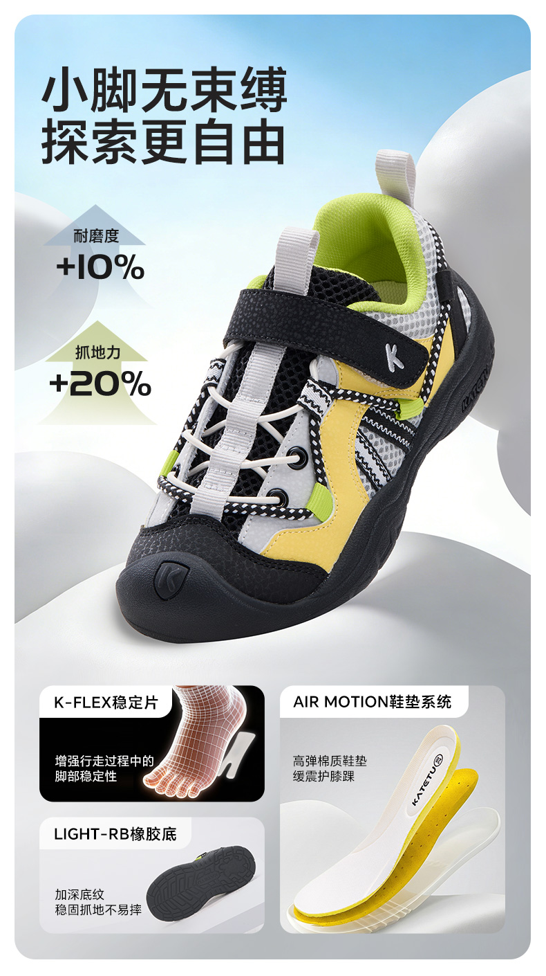 卡特兔户外儿童运动鞋2026年春季新品溯溪鞋防滑耐磨透气登山鞋