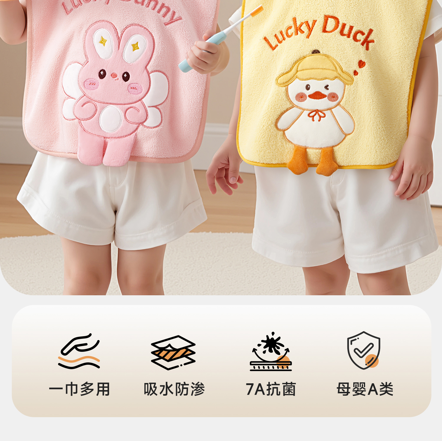 儿童洗漱巾刷牙防水围兜毛巾婴儿洗脸巾加长宝宝防湿神器漱口巾