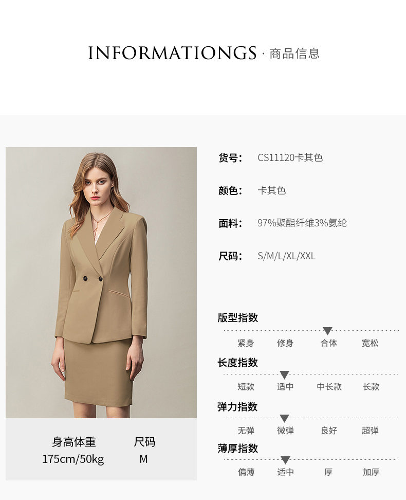 IWY/卡其色职业套装名媛女神范时尚气质商务经理工作服套裙西装OL CS11120卡其色