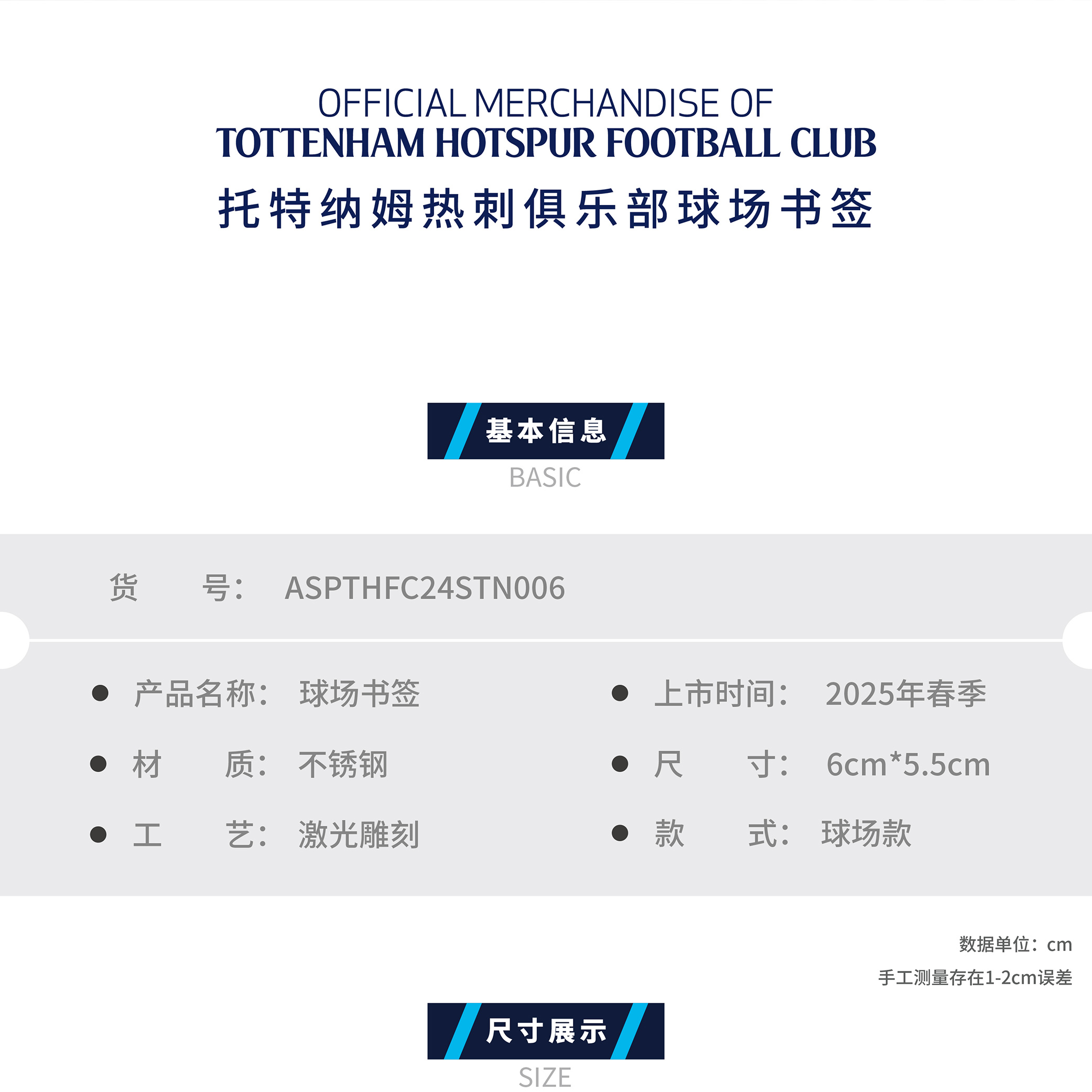 【官方正版】托特纳姆热刺俱乐部 | 球场书签创意金属书签球迷周边