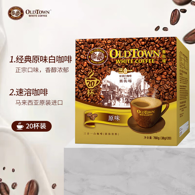 马来西亚旧街场咖啡原味/榛果味20条装760g 口感正宗纯粹浓郁 025536/025537