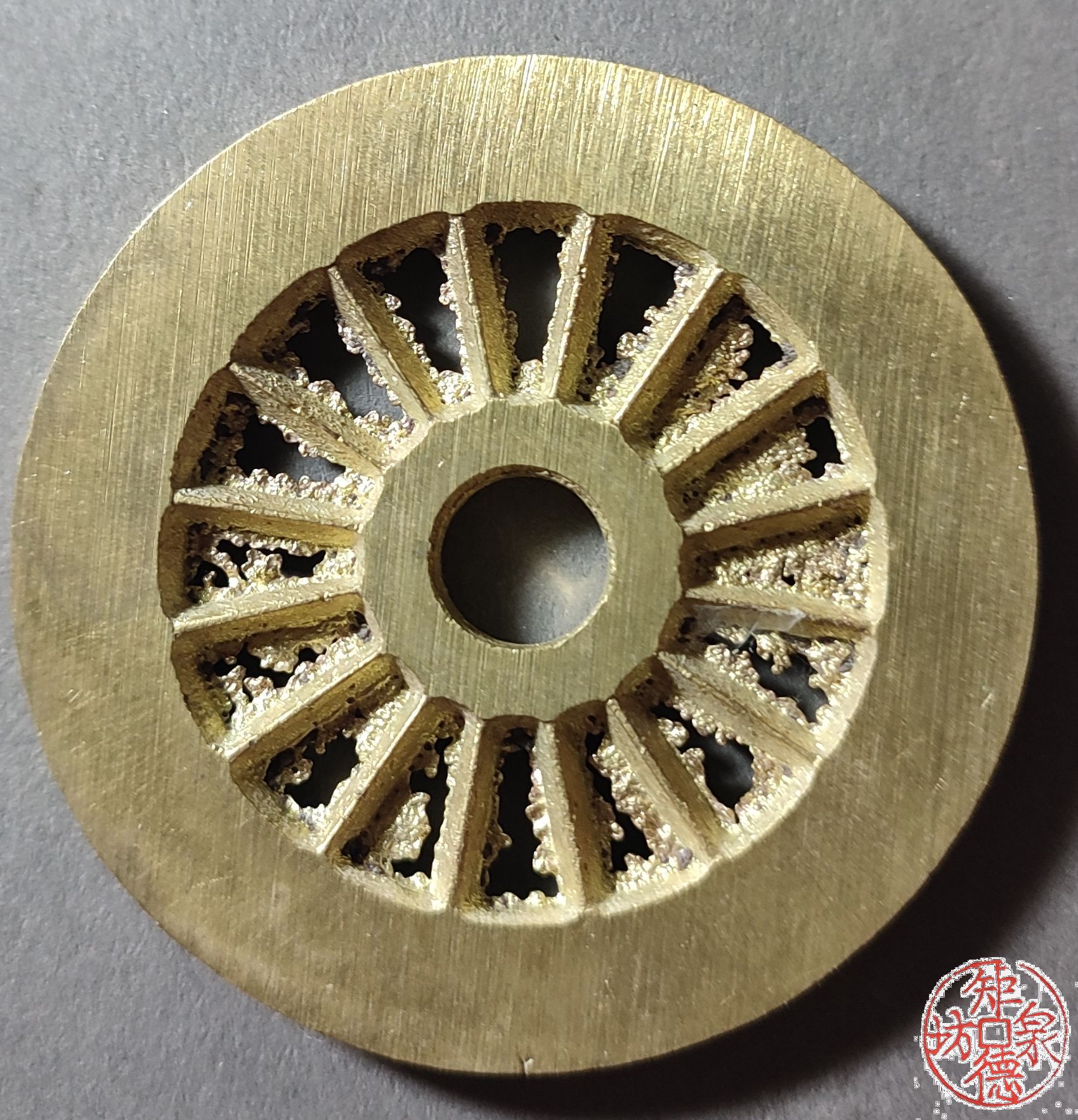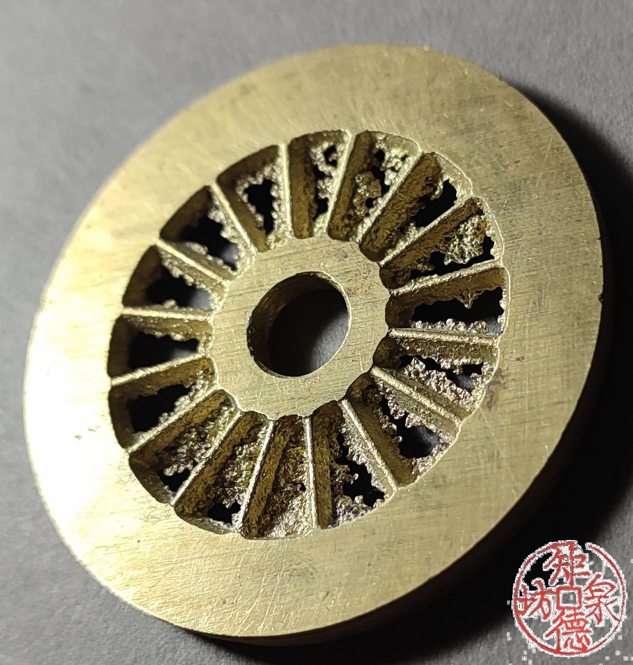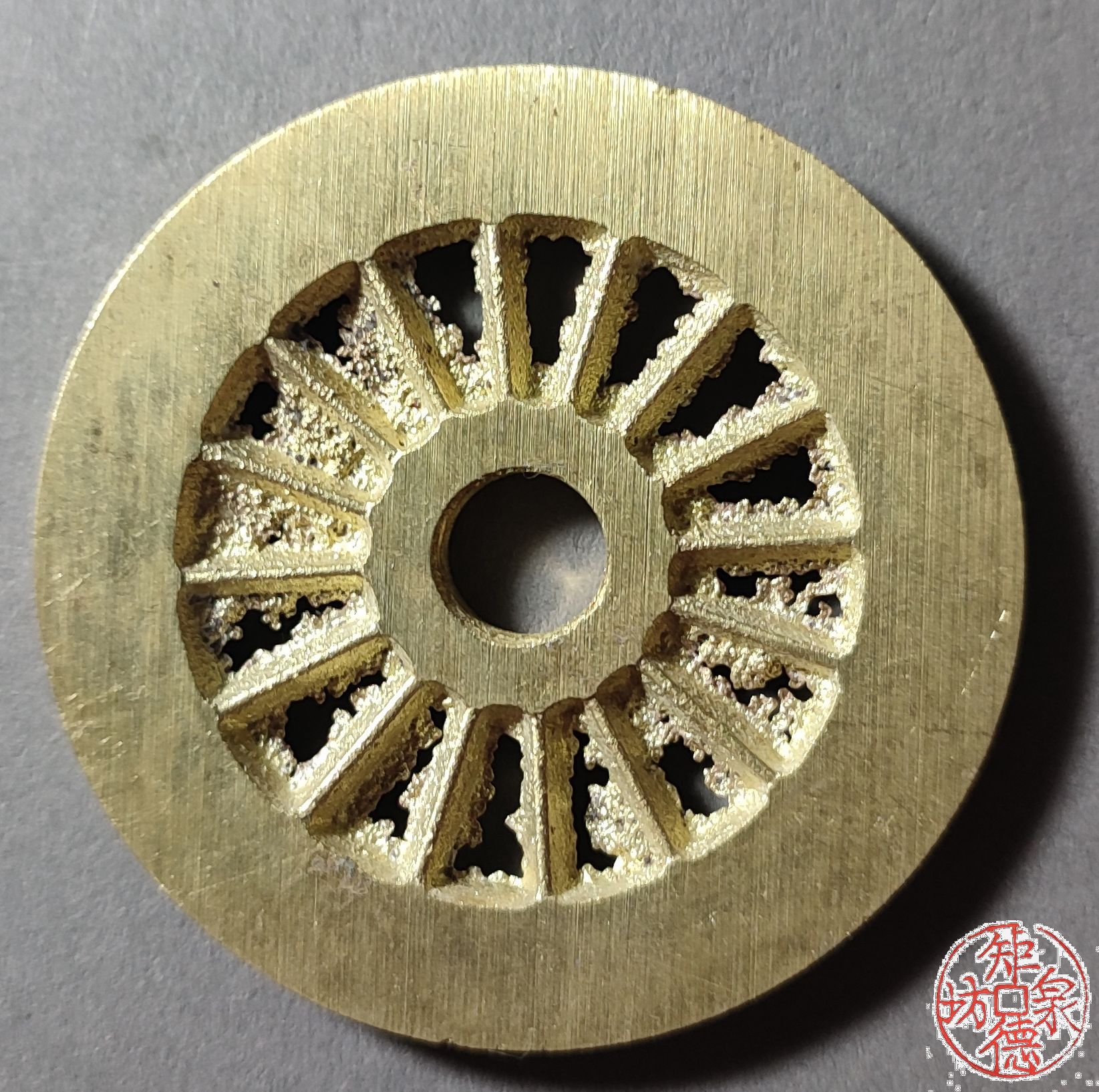 为了尽量还原古代钱币的文字神韵与时代铸造特征,每一枚都进行手工修刀、打磨。会有打磨痕迹、刻刀痕迹,铸造气孔或者微小沙眼,这正是手工与机器制作的区别,并非瑕疵。