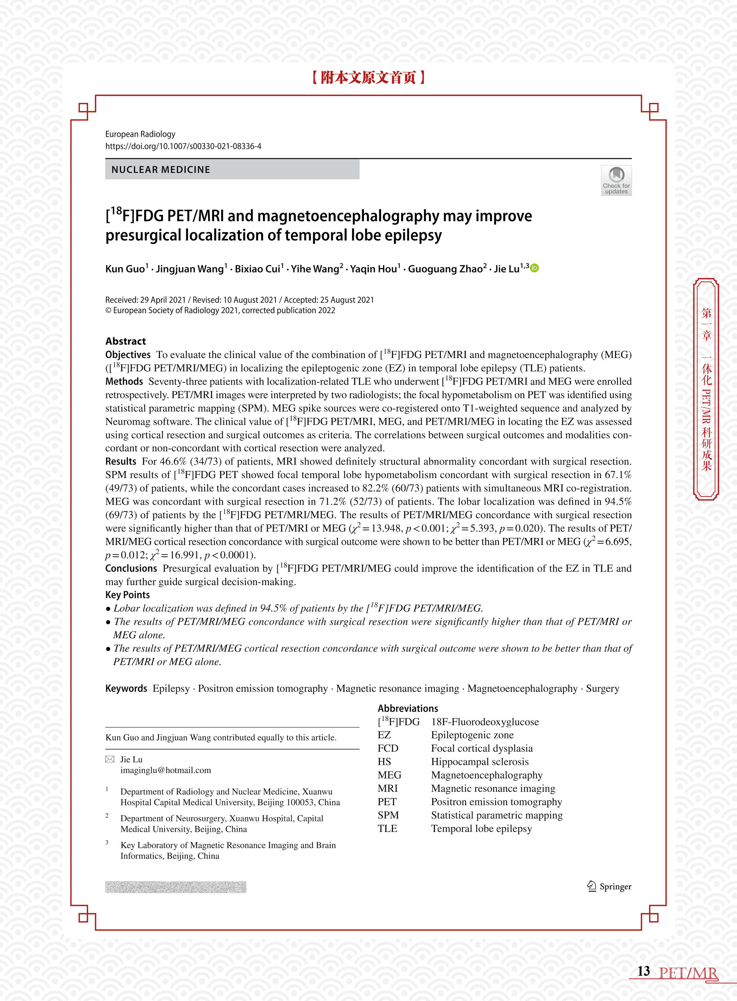正版现货 首都医科大学宣武医院一体化PET/MR成果集 卢洁主编