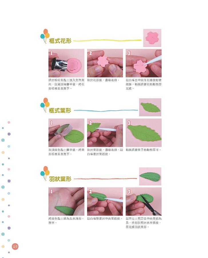 ◆ 一次學會八大黏土基礎入門:調色、基本塑形、動物、配件製作、花葉模形、包覆、上色、穿衣,簡單易作立即上手!