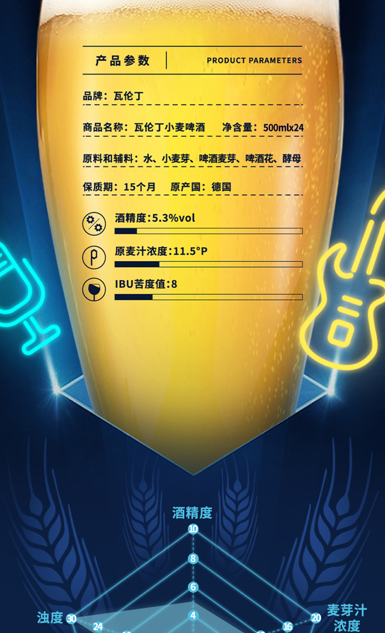 【1件包邮 24瓶整箱装】瓦伦丁小麦500ml*24 麦香浓郁淡色啤酒 甘肃青海内蒙古新疆西藏宁夏海南港澳台不发货 上海/天津/东莞仓随机