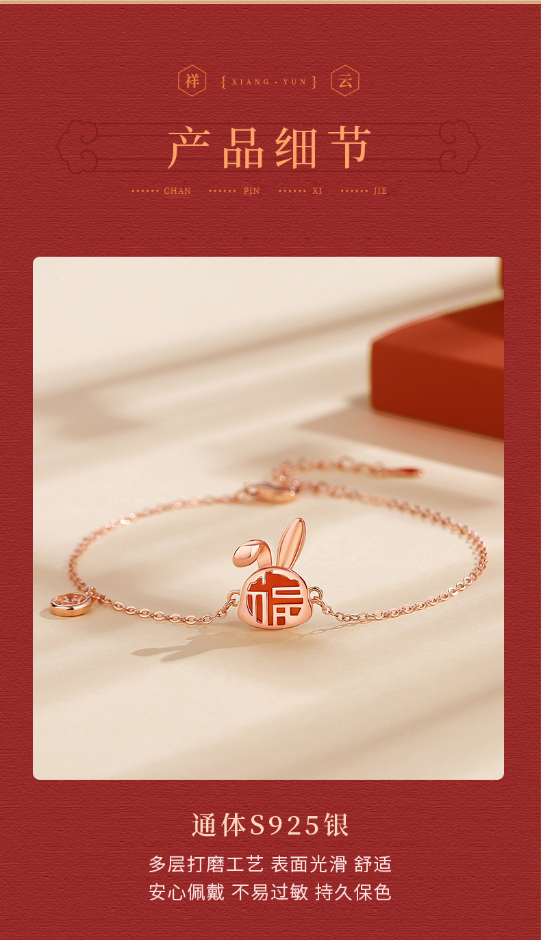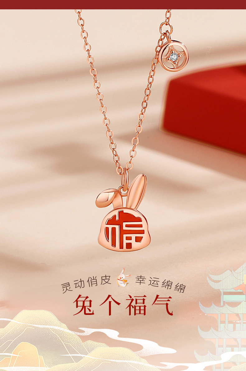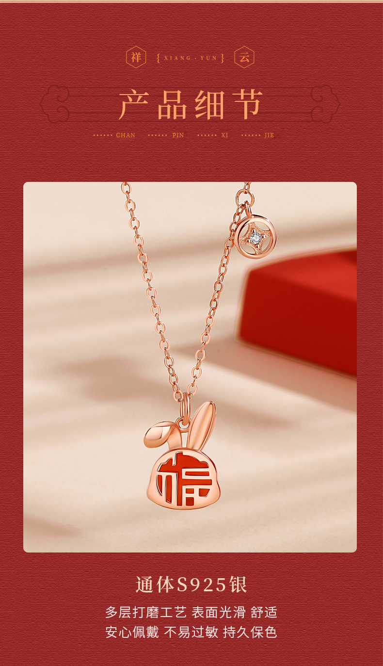 【授权商品】BOMURNNY/宝慕尼 S925纯银兔个福气兔子兔年限定项链