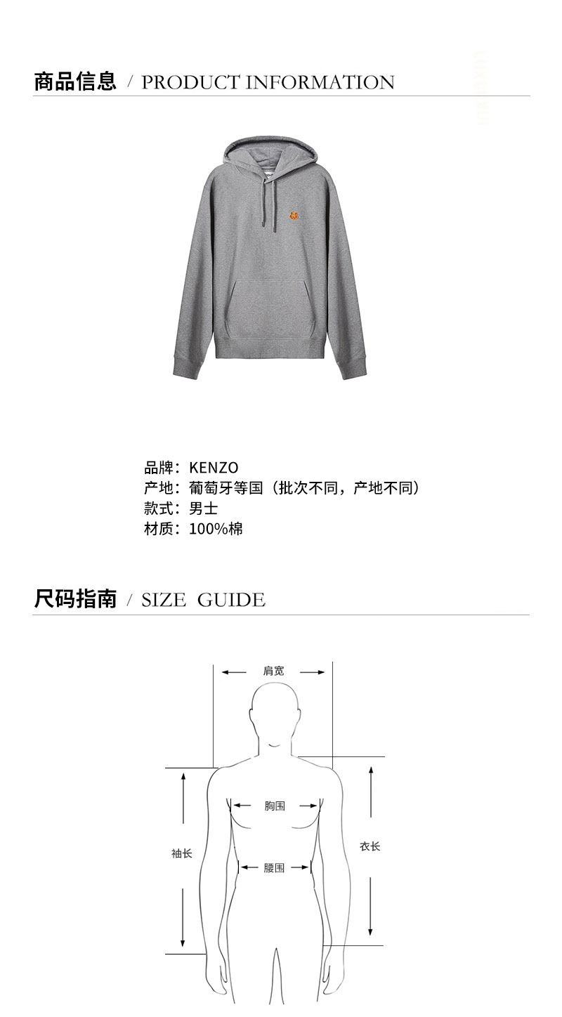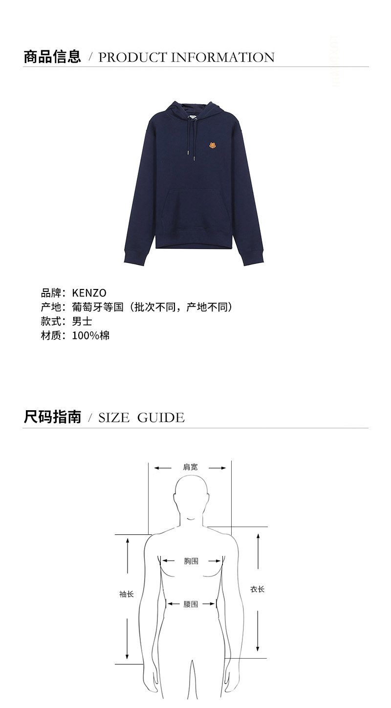 KENZO/高田贤三 男卫衣 男士棉质连帽卫衣运动衫 FB5 5SW365 4ML