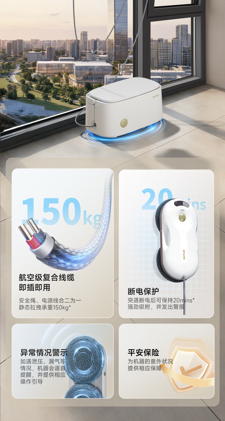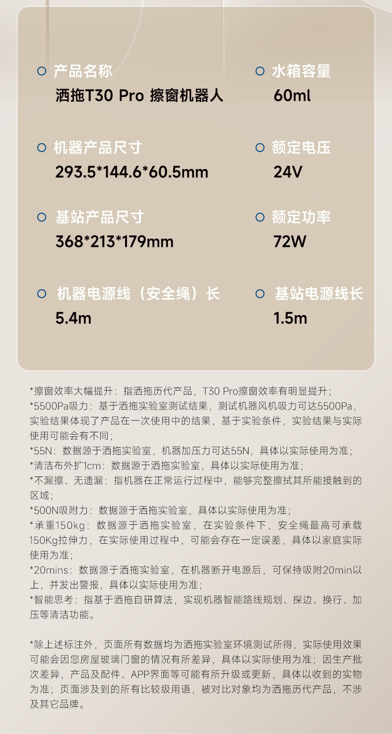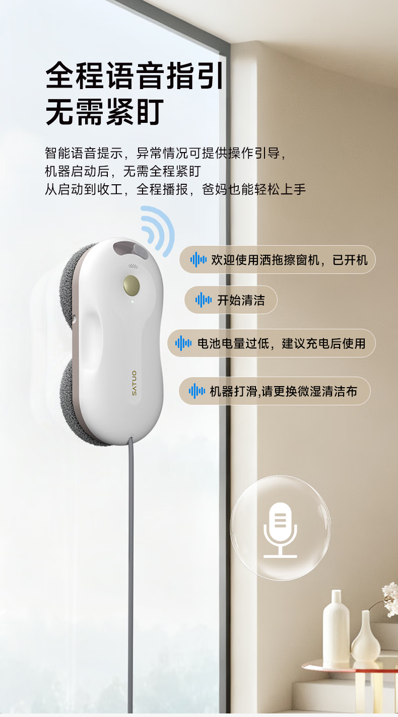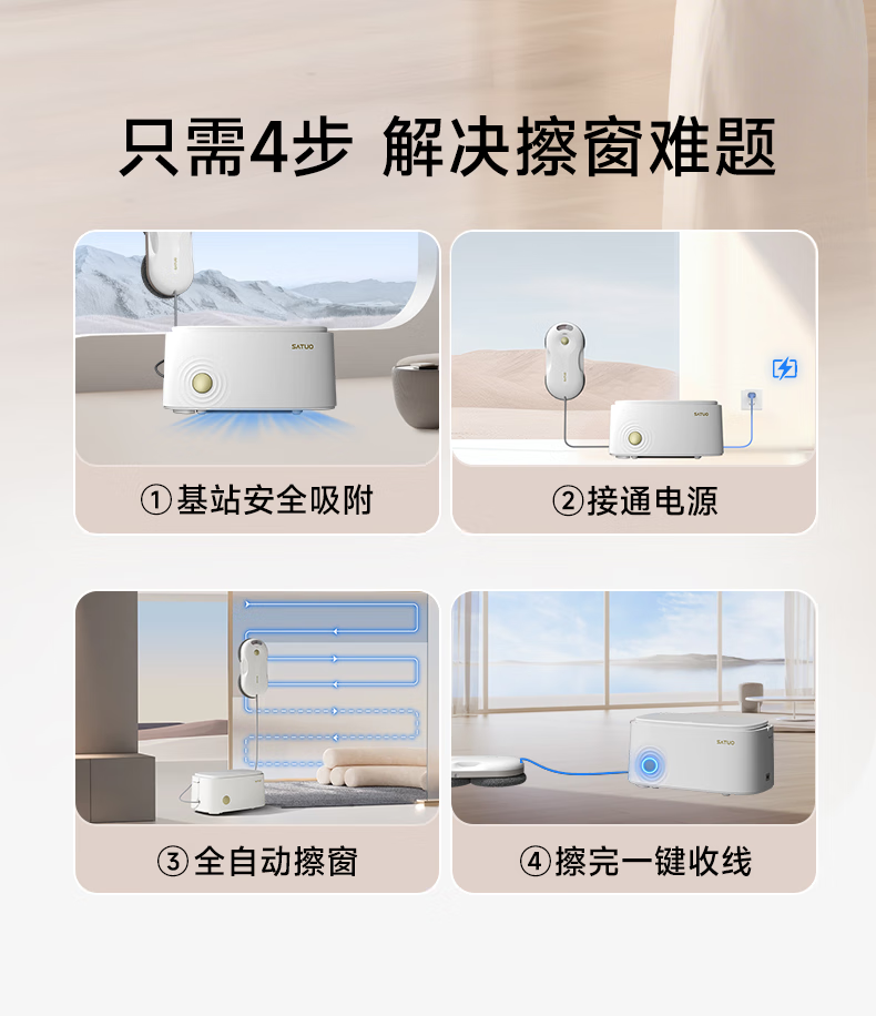 洒拖(SATUO)T30PRO擦窗机器人全能基站版擦玻璃机器人 洒脱家用自动喷水湿擦高层户外擦窗神器