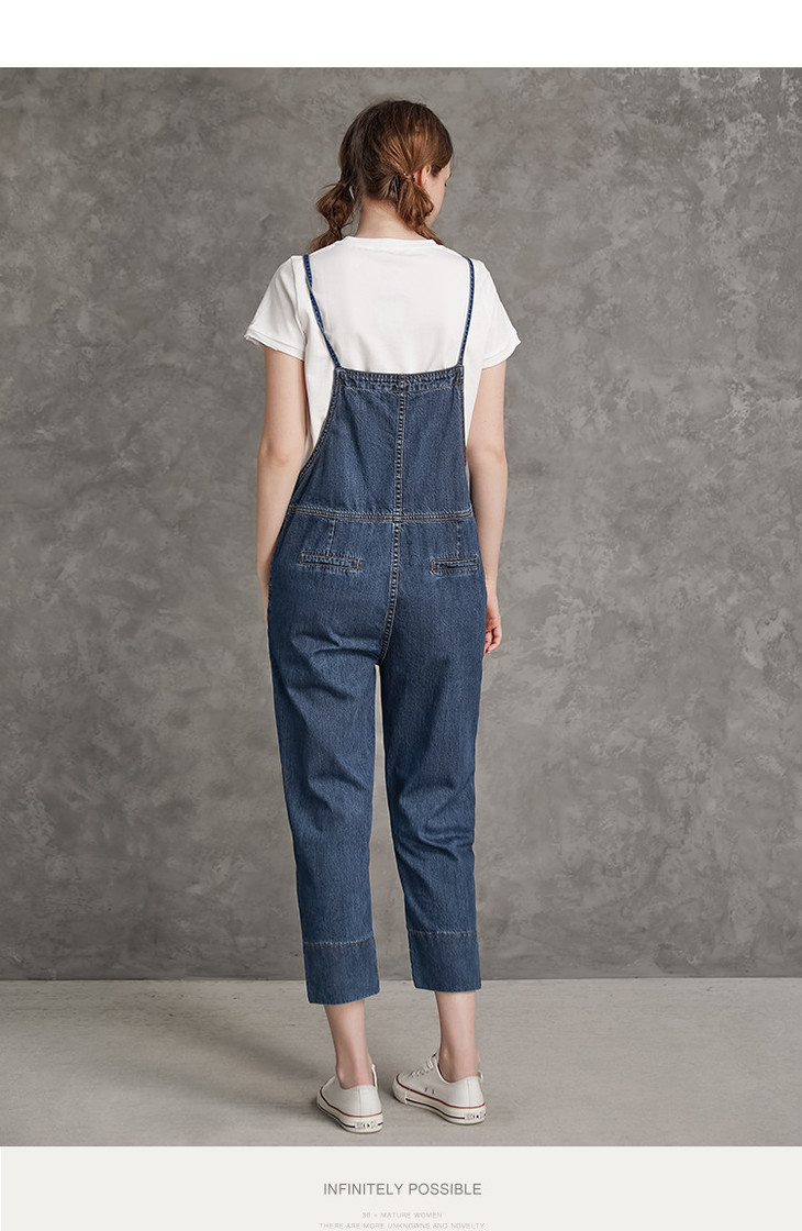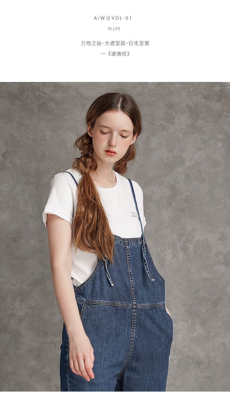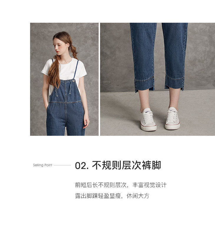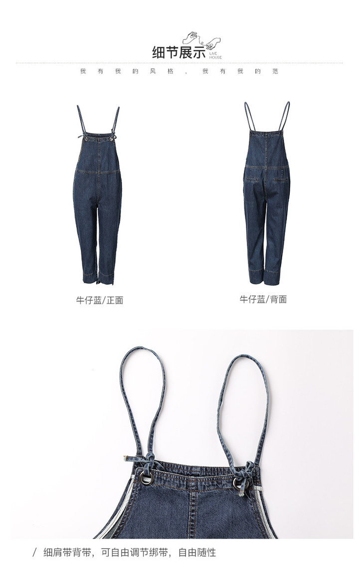 Famecoco范可儿高腰牛仔背带裤纯棉可调节肩带减龄九分牛仔裤F185GA129