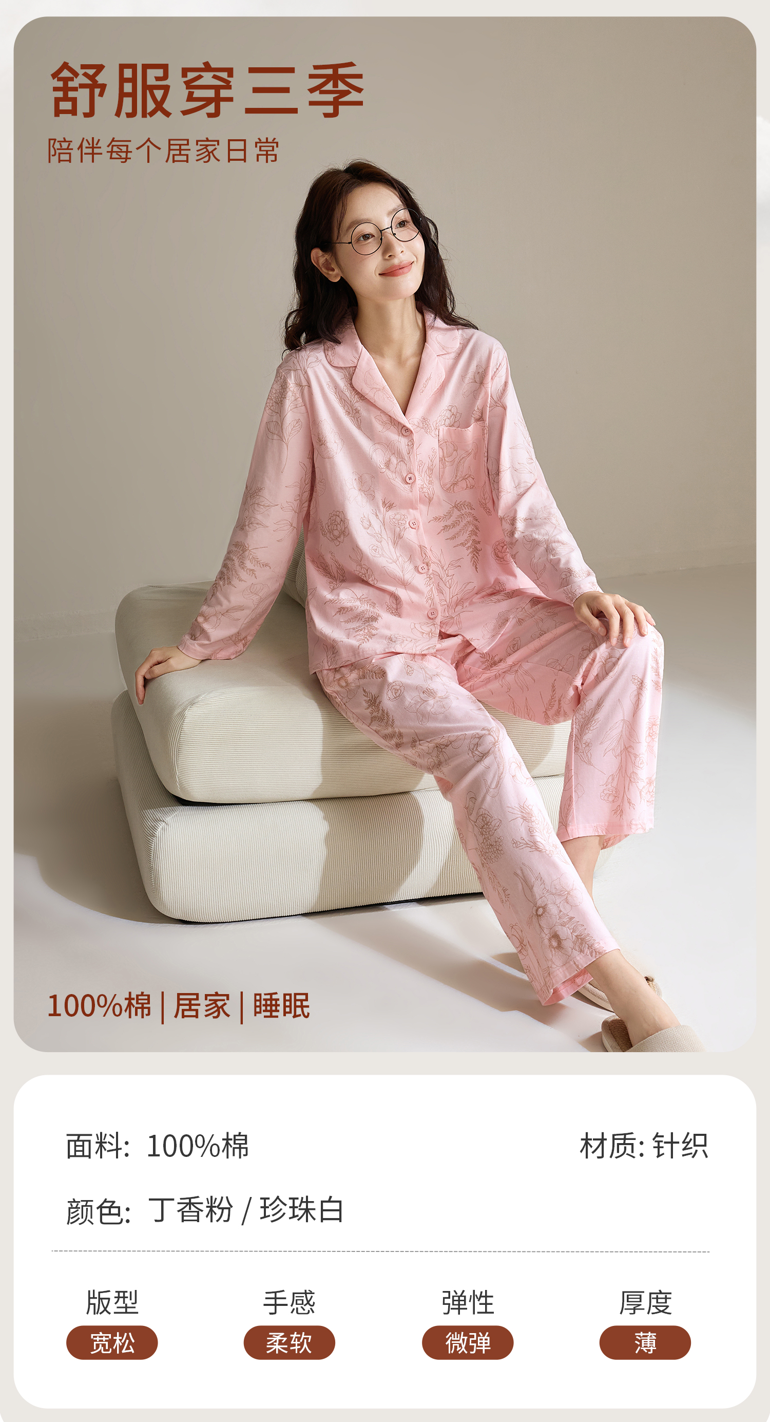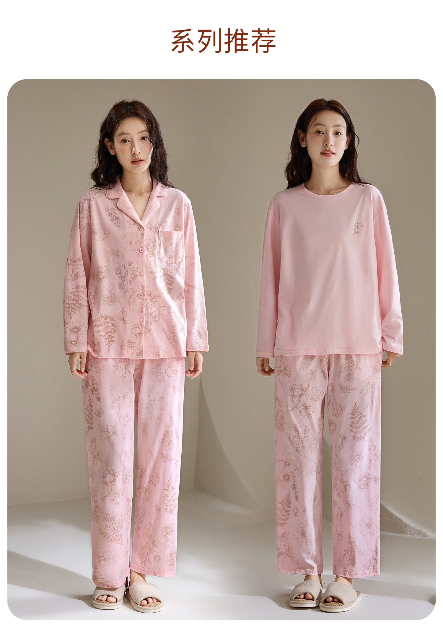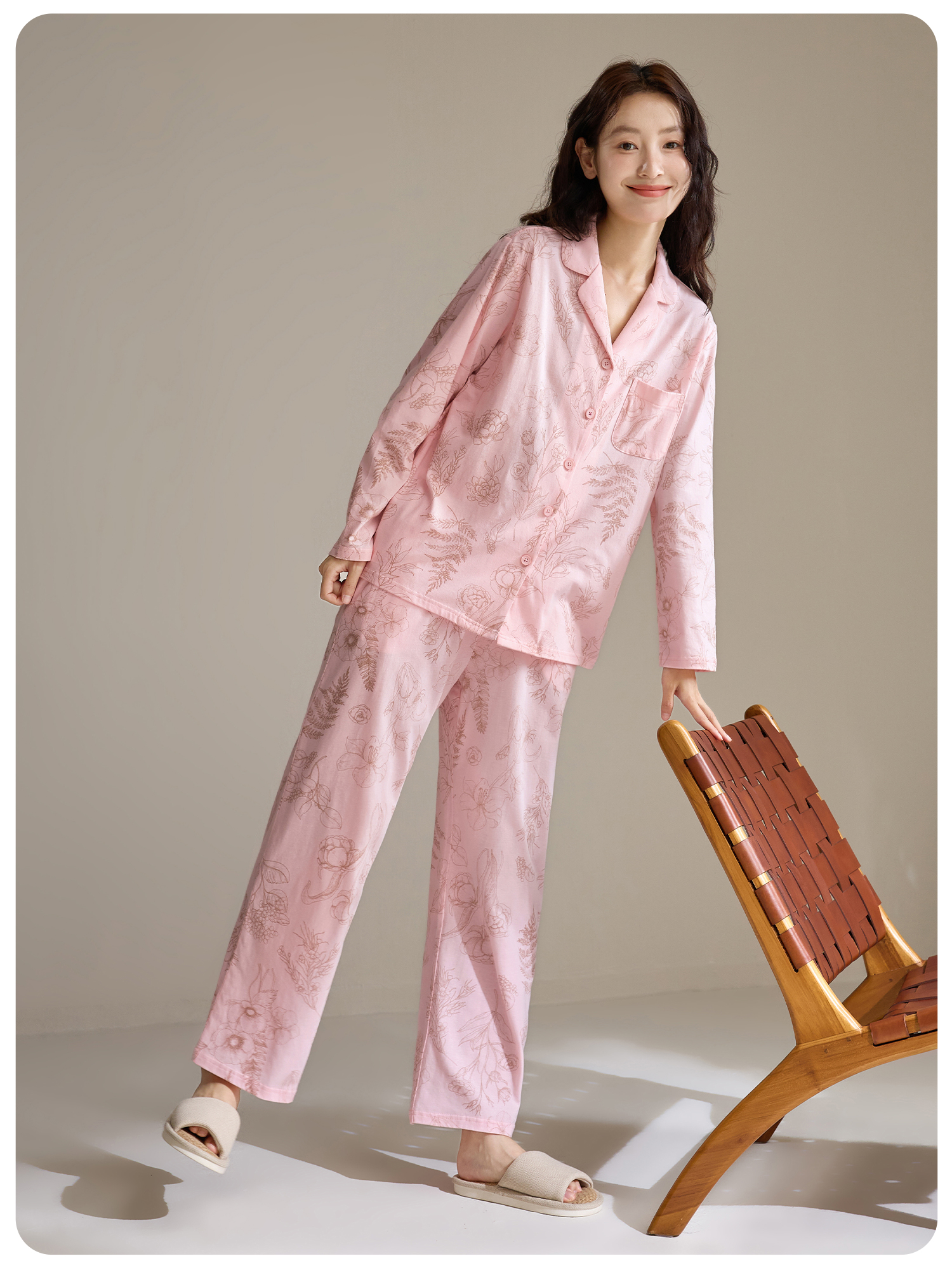 康妮雅女式长袖长裤开襟套装