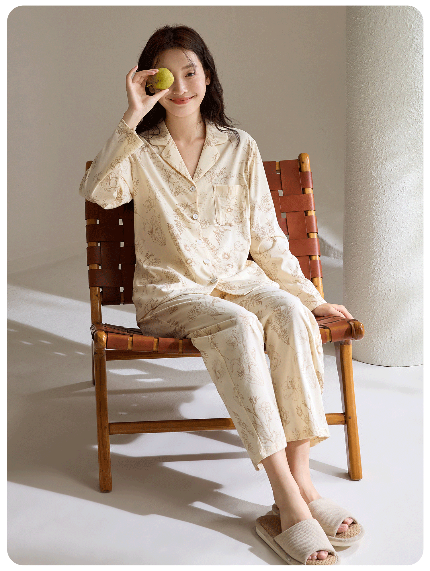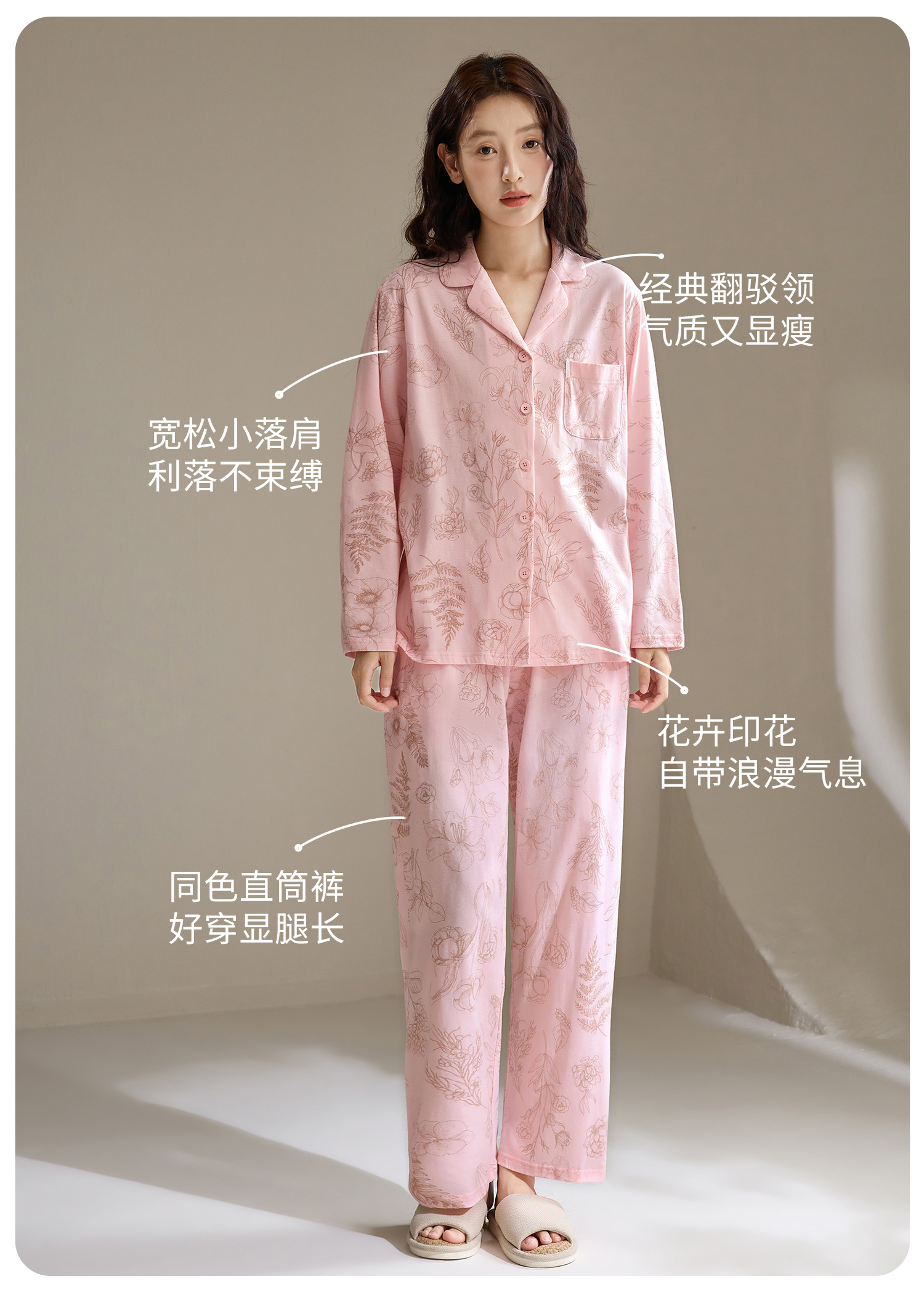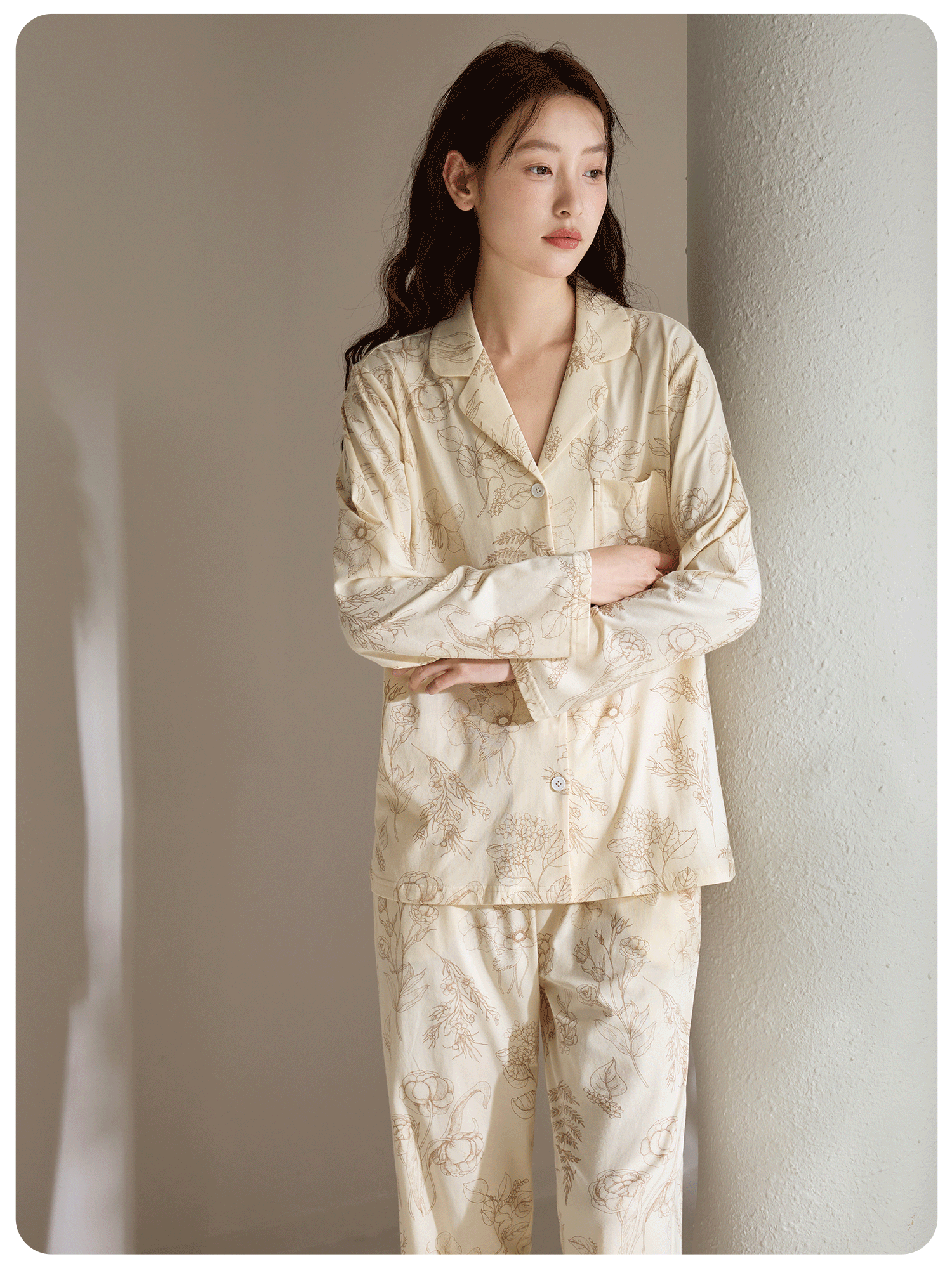 康妮雅女式长袖长裤开襟套装