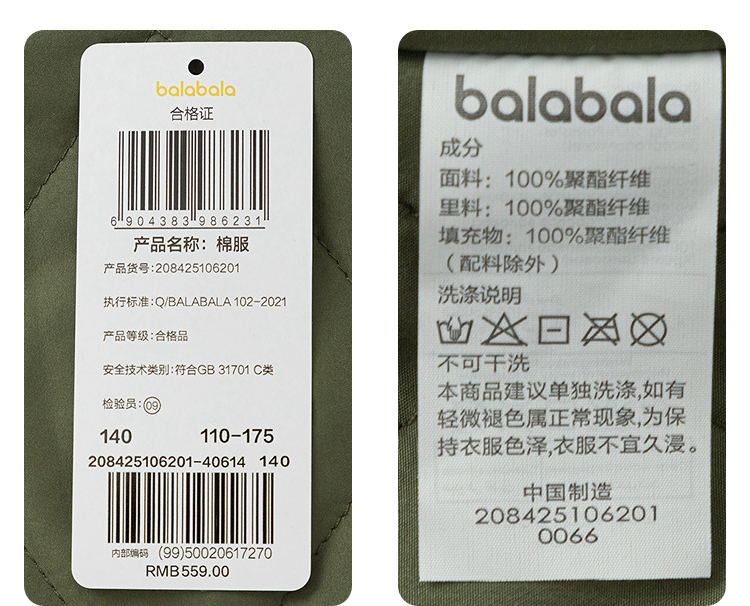 巴拉巴拉balaOne儿童棉服女童男童大童外套新款童装2025秋冬保暖