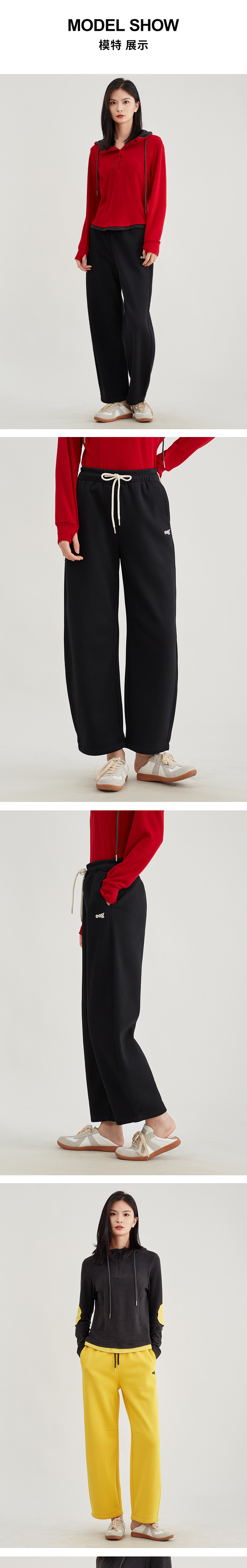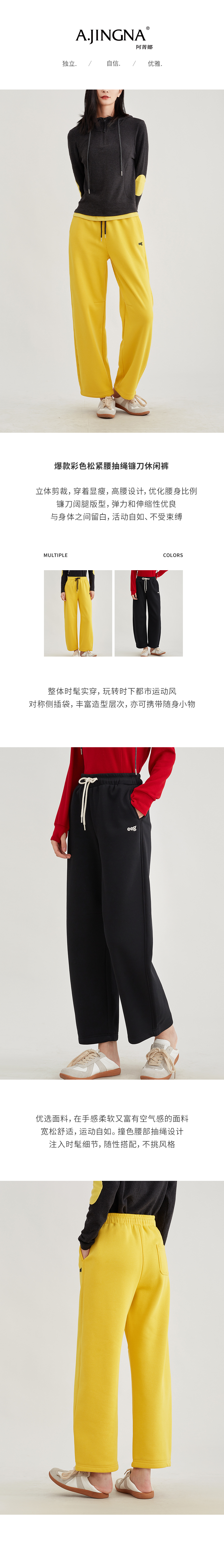 【阔腿显瘦】阿菁娜爆款彩色松紧腰抽绳镰刀加绒休闲裤F29D210025