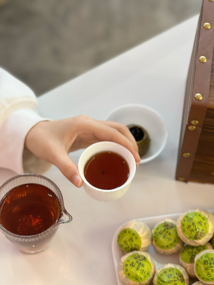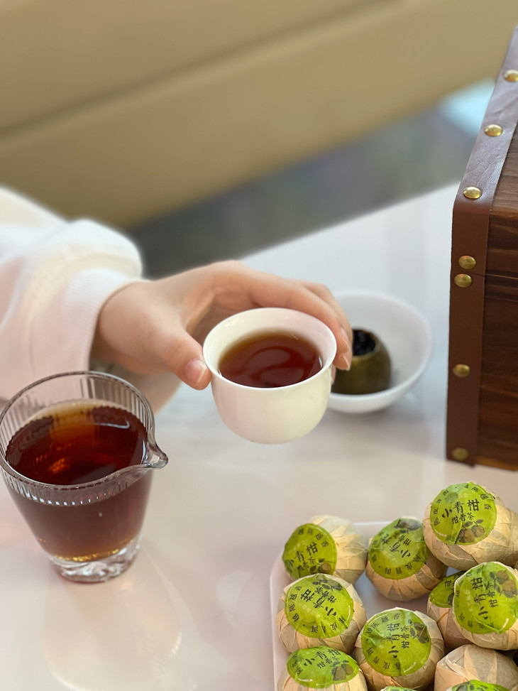 每逢佳节胖三斤,仔细一看三公斤 春节就是各种吃吃喝喝 看着肚子上多出来的一层游泳圈🛟 啊啊啊啊~ 当时要是能管住这张嘴就好了 来来来,把我的饭后必须喝的小青柑分享出来 【强韵 小青柑】 健脾养胃|润喉止咳化痰|调和脾胃|刮油解腻 真材实料,10年新会柑+十六年的宫廷普洱融合 经过日晒而成 柑与茶的融合恰到好处 清醇的果香和普洱的陈香 大餐后备一颗,喝上一整天