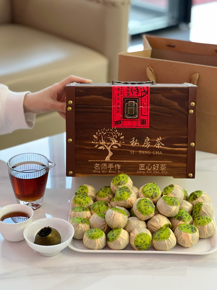 (一箱500克,大概40-45个左右) 之前合作了很久的强韵茶厂 不用我多说,也是大家的老朋友了🏻🦳 怎么都好不了的咳嗽 认识在中医院工作的朋友让我喝三天小青柑 真❗的❗好❗了❗一❗大❗半❗ 特意去了解了一下小青柑的神奇之处 紧急找茶厂订了这批货‼️ ✅新会青柑化痰止咳 ✅云南熟普温补散虚火 两者结合的中药茶 既有🔺新会陈皮“理气”的作用 又有🔺云南熟普“抗菌消炎”的功效 降脂消食,润喉清肺去火消炎 暴饮暴食来一杯,不用担心小肚腩 无论是自己喝、送父母、送闺蜜 商务送礼都是非常好的选择