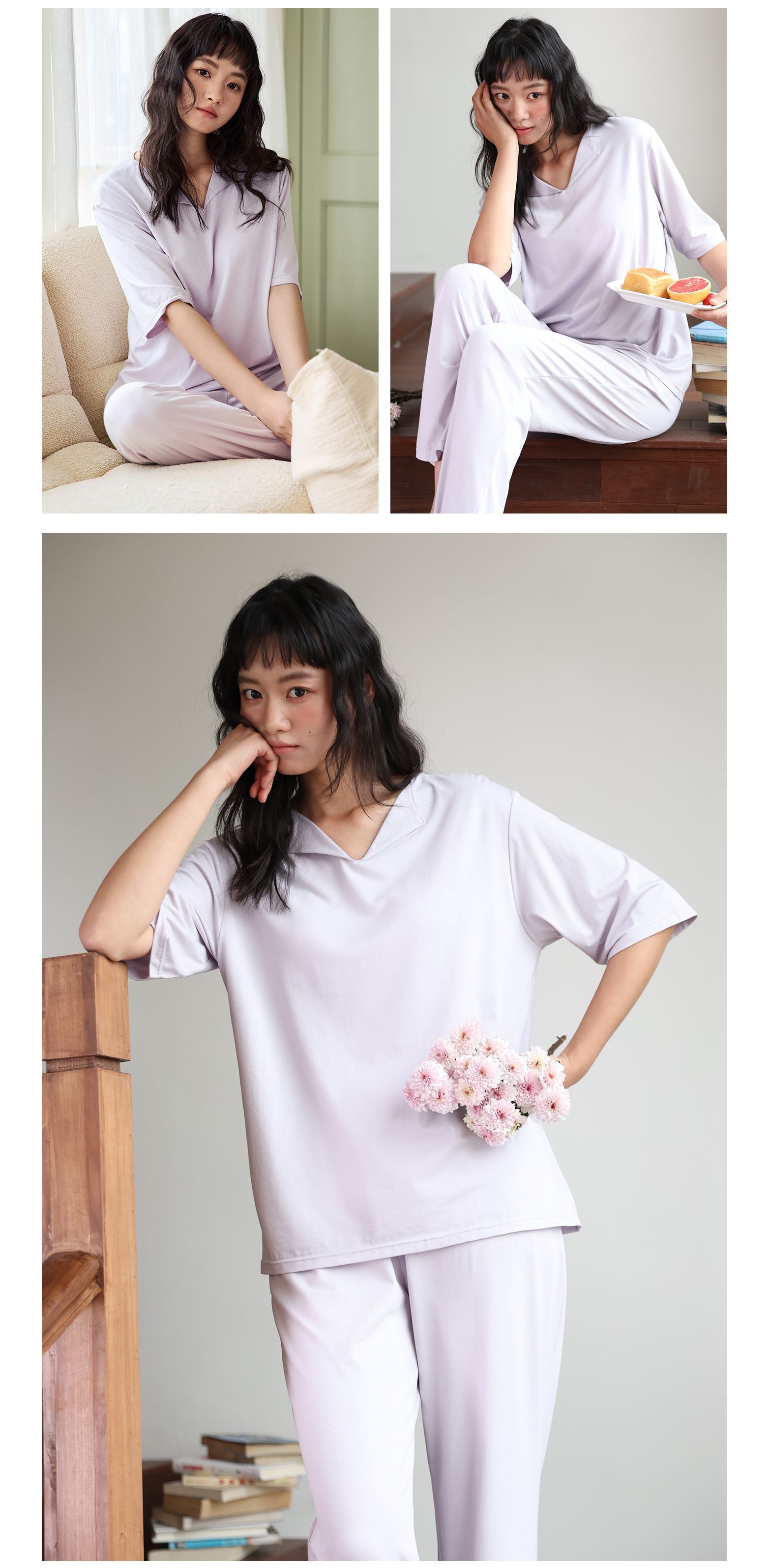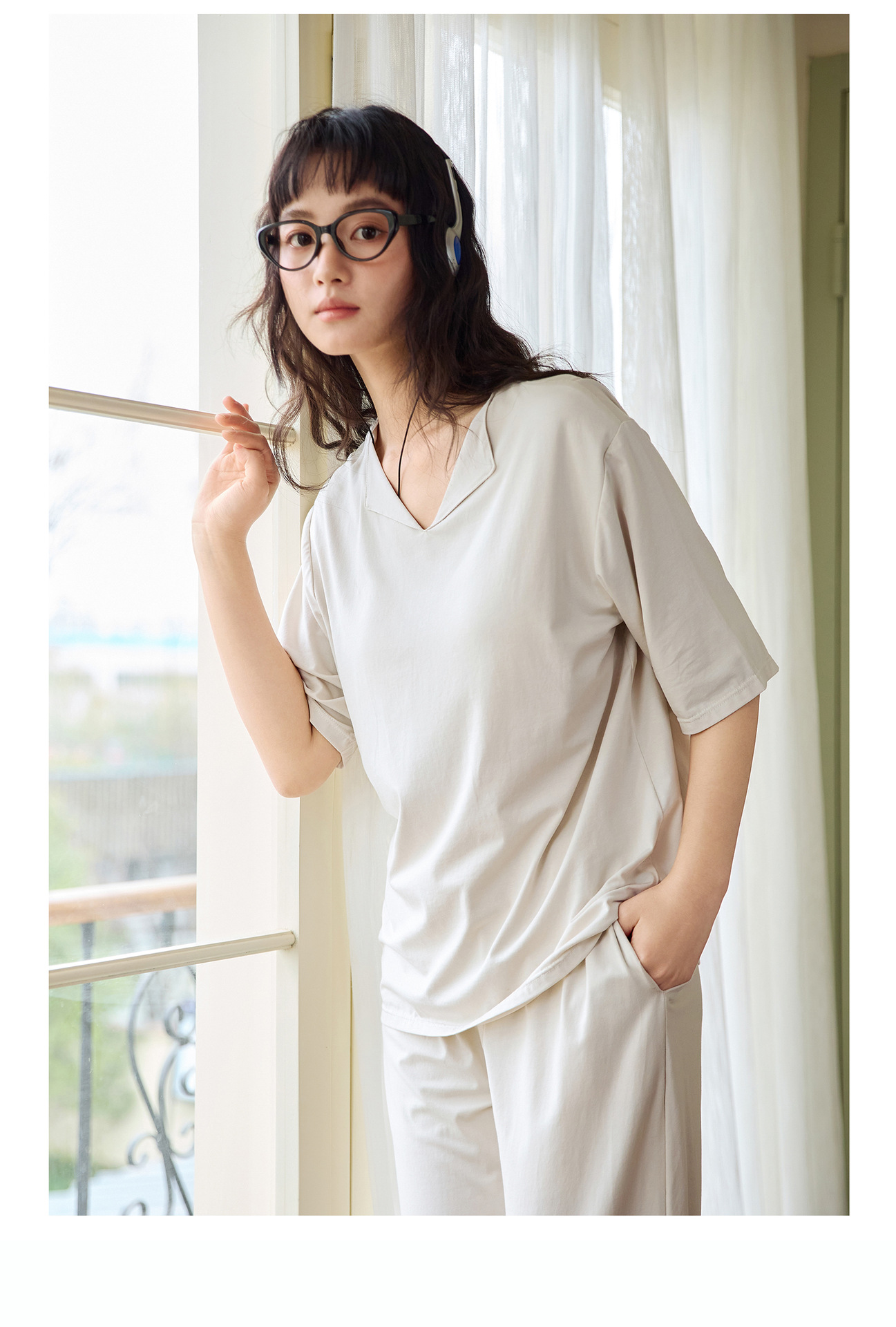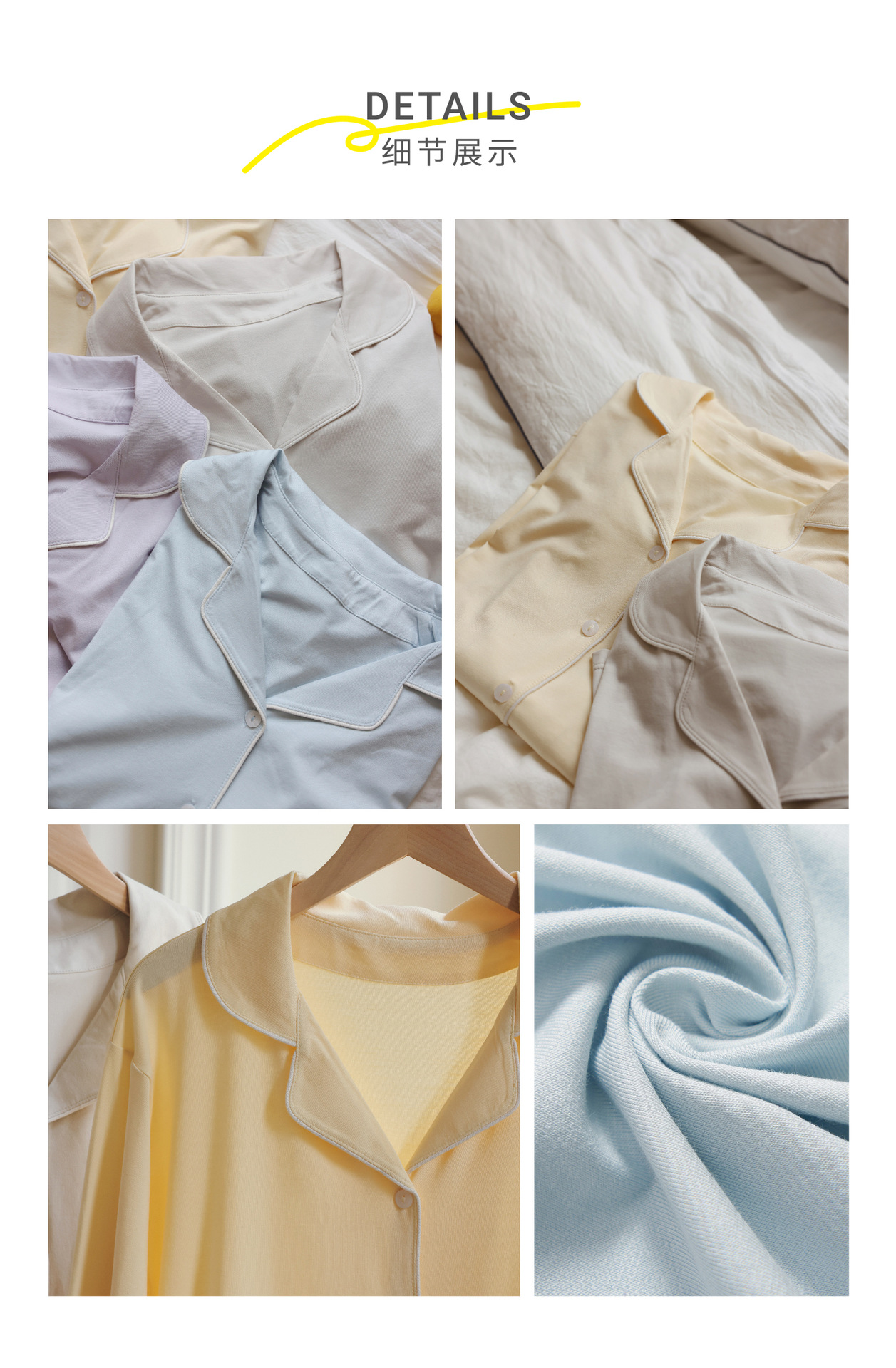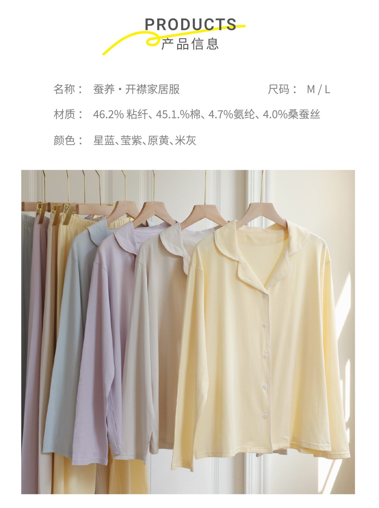 春夏天丝棉桑蚕丝家居服 软糯透气纯色可外穿翻领睡衣套装