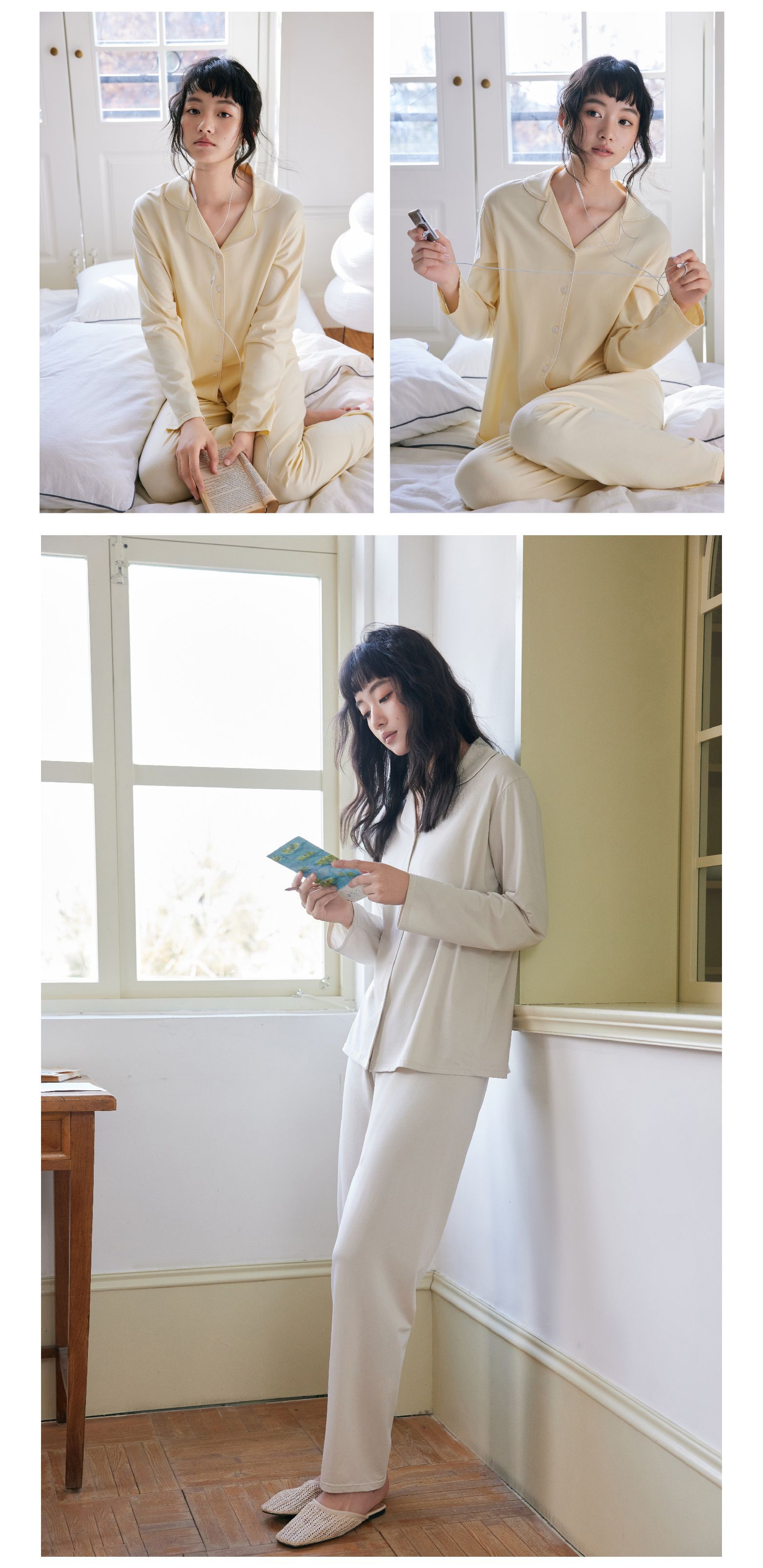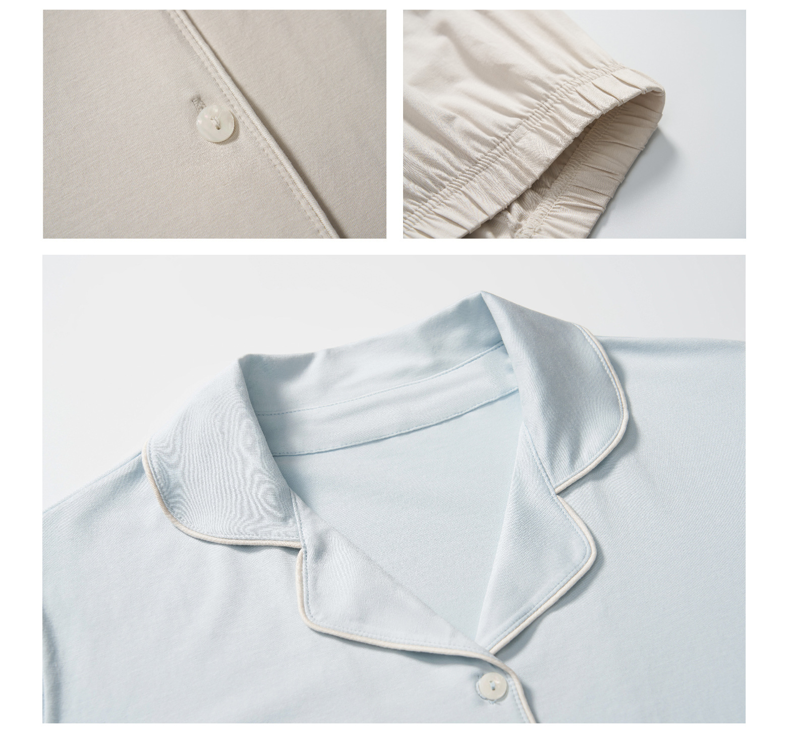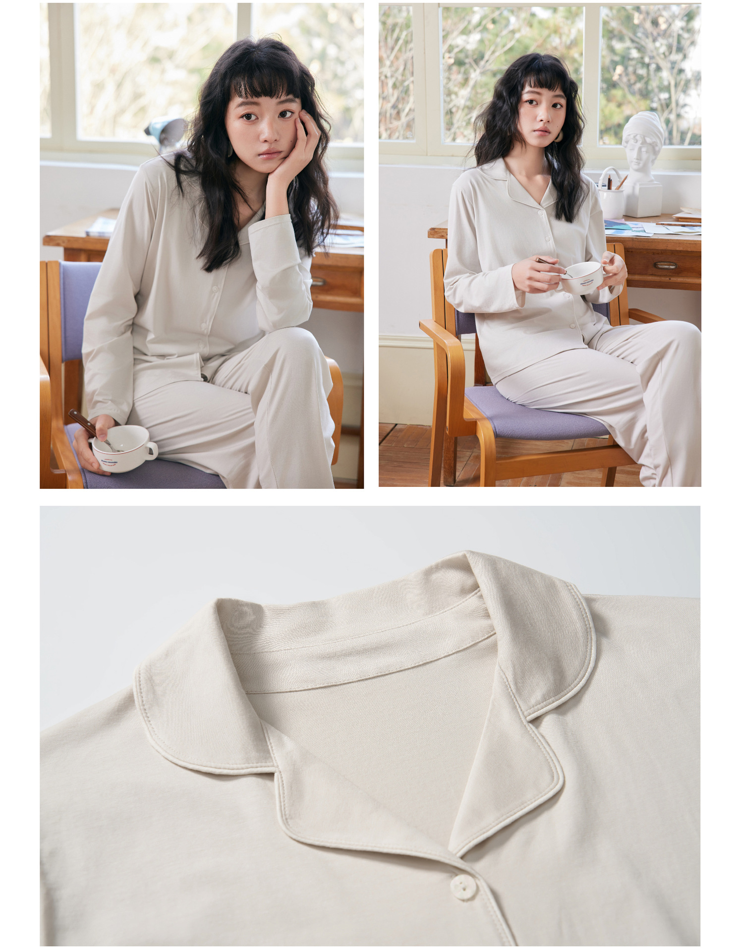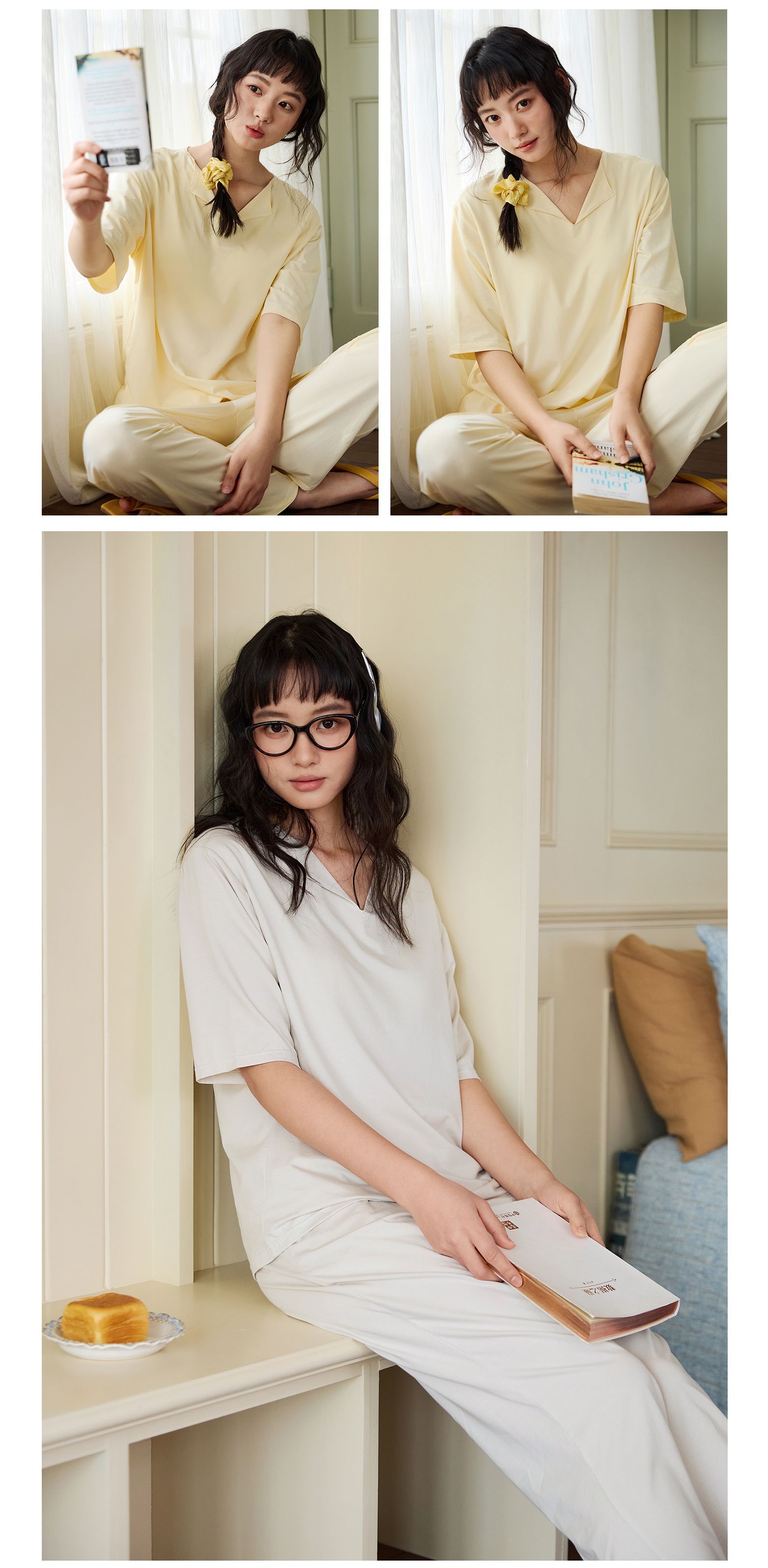 春夏天丝棉桑蚕丝家居服 软糯透气纯色可外穿翻领睡衣套装