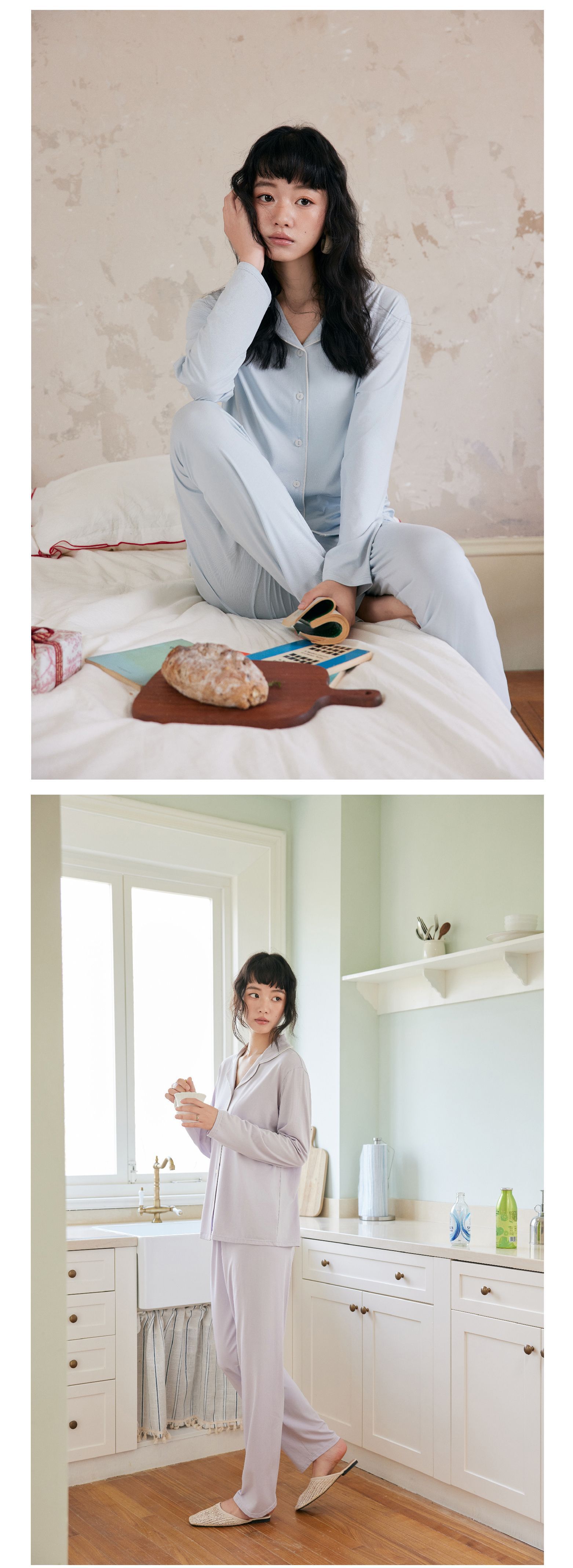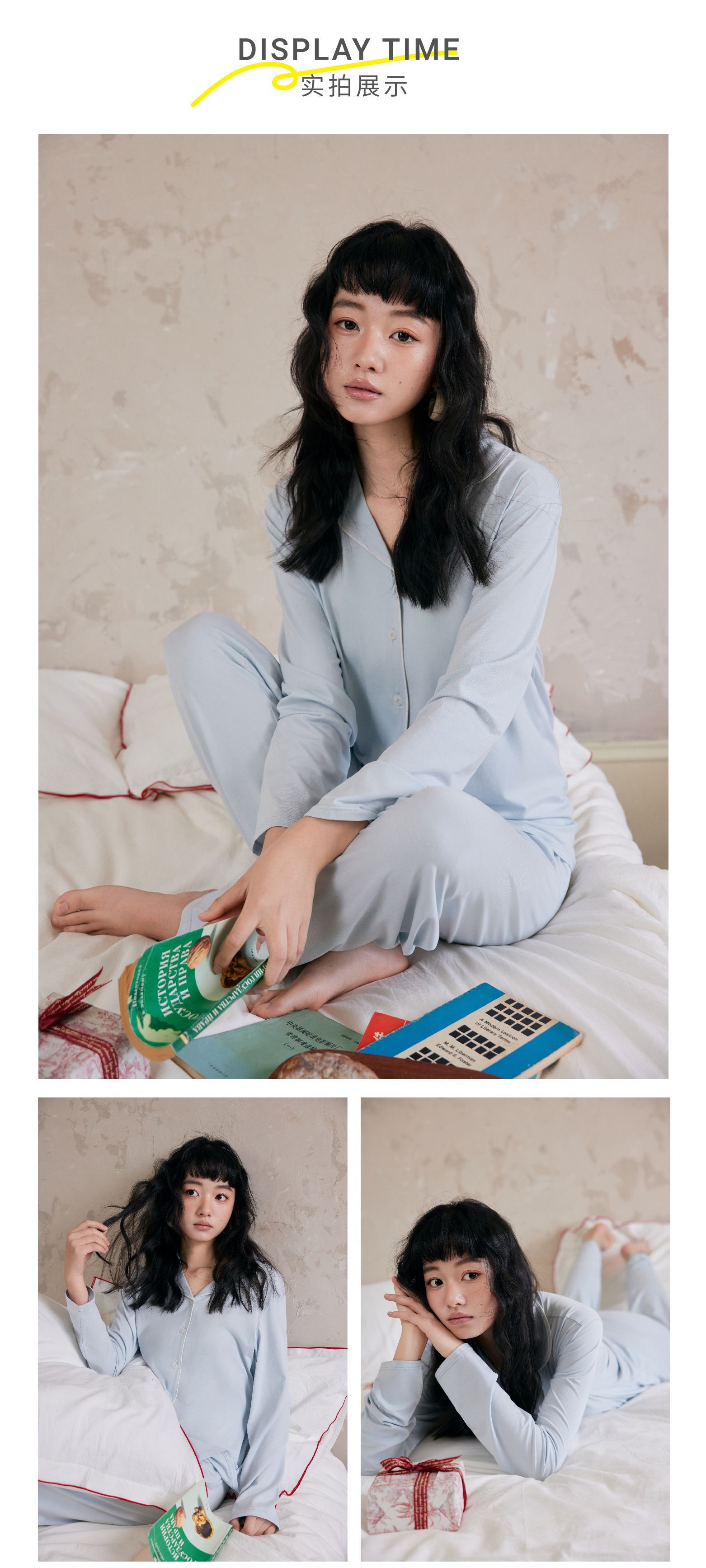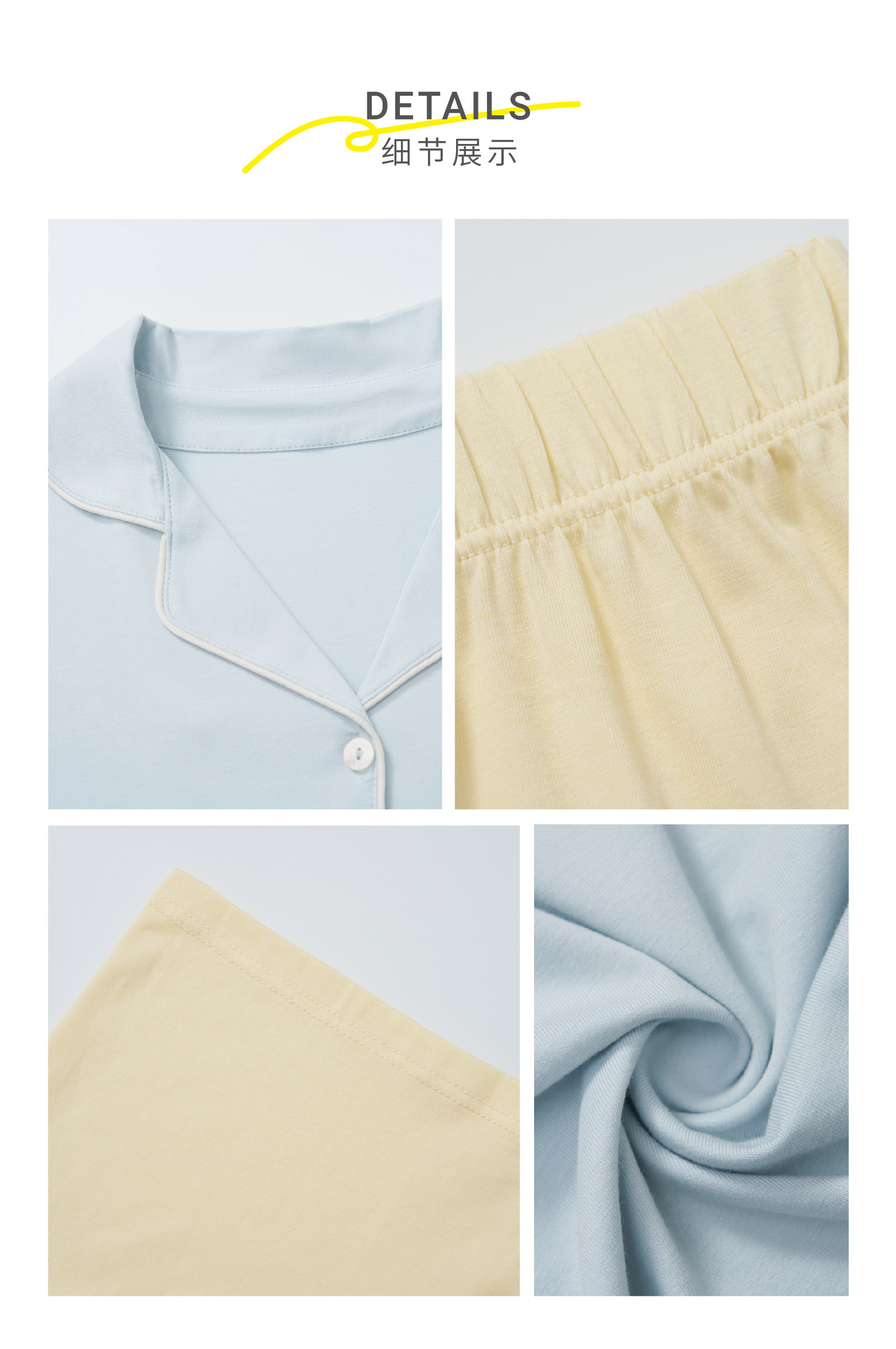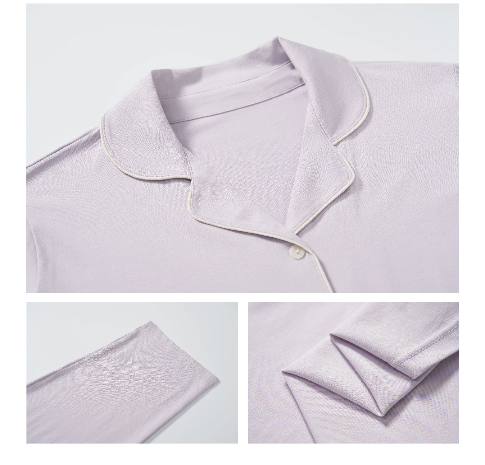 春夏天丝棉桑蚕丝家居服 软糯透气纯色可外穿翻领睡衣套装