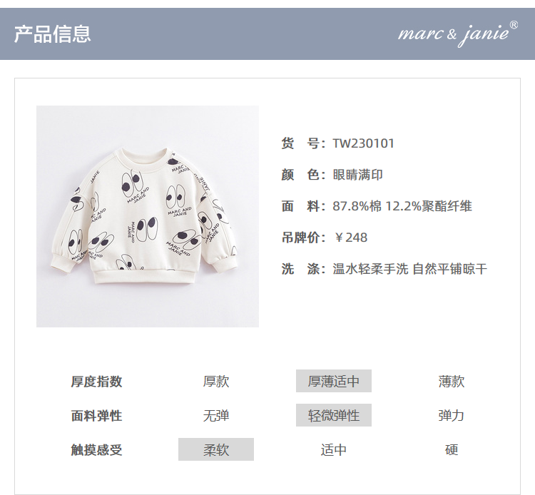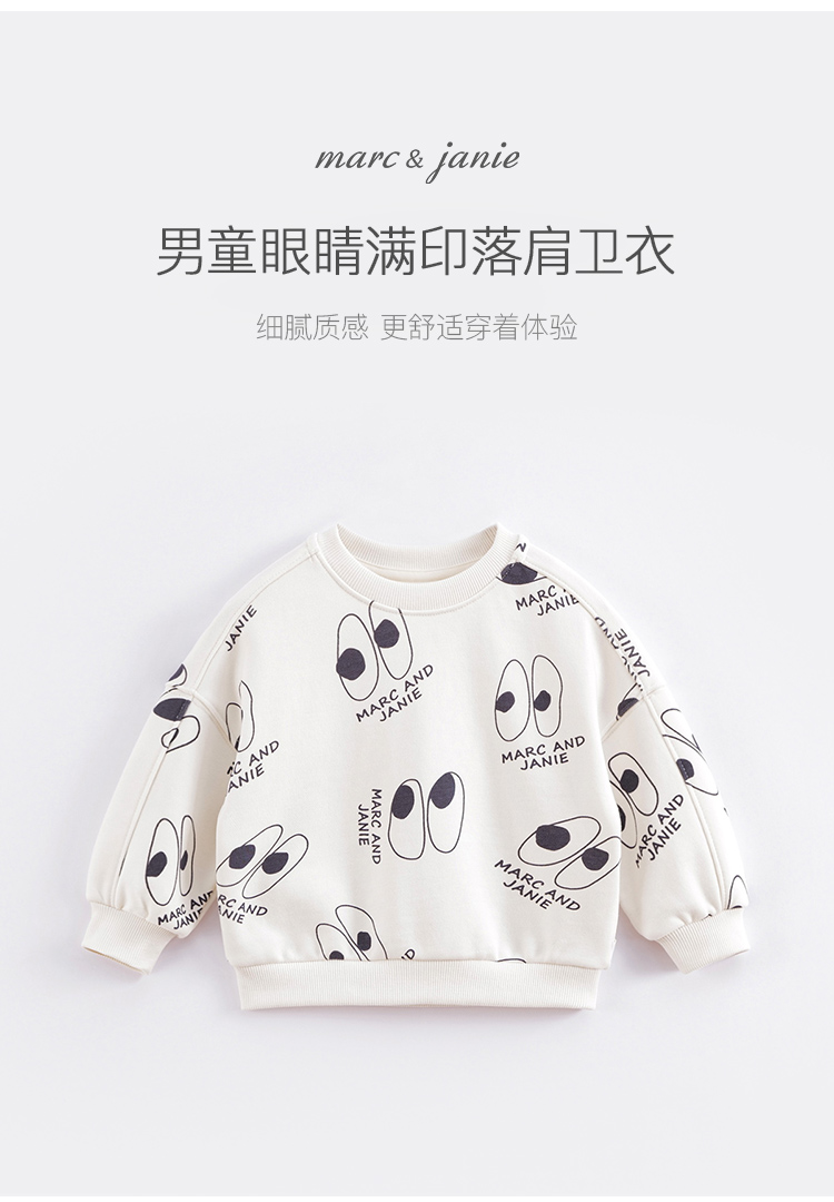 马克珍妮春装新款 男童眼睛满印宽松落肩卫衣230101