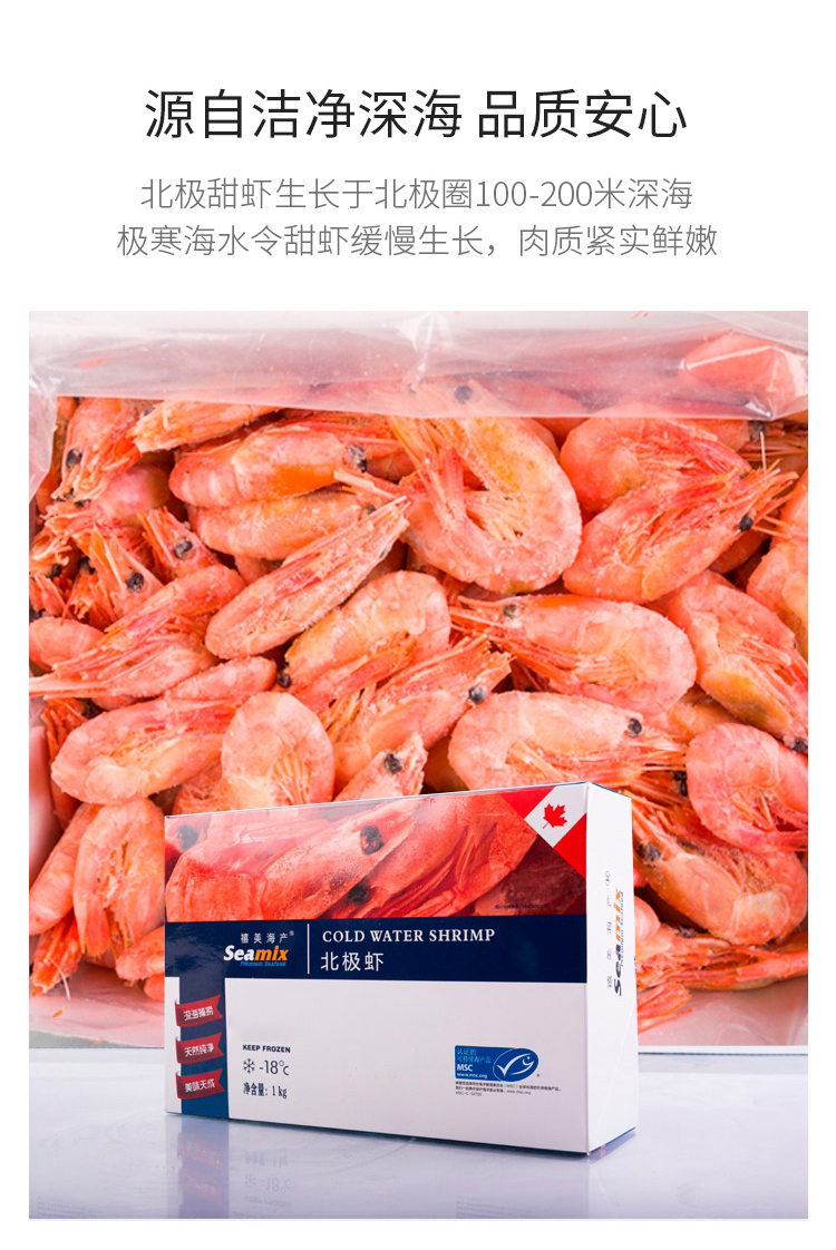 禧美 加拿大北极甜虾1kg(90-120只/盒)(包邮直发)