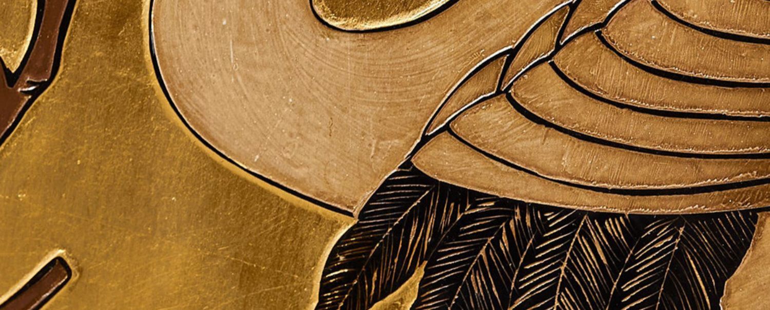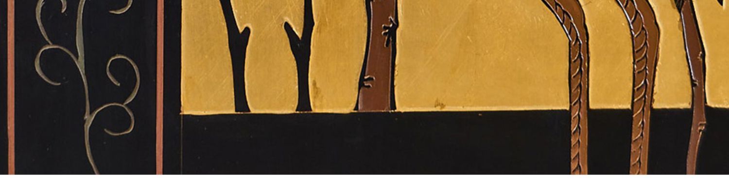 独角鹿西洋古董18世纪日本江户时代出品「金影藤辉」主题金地纸本设色六曲屏风