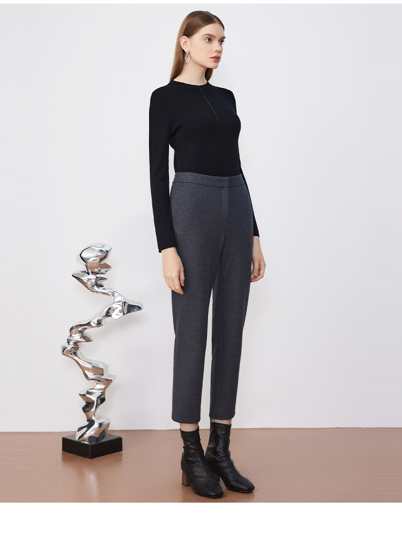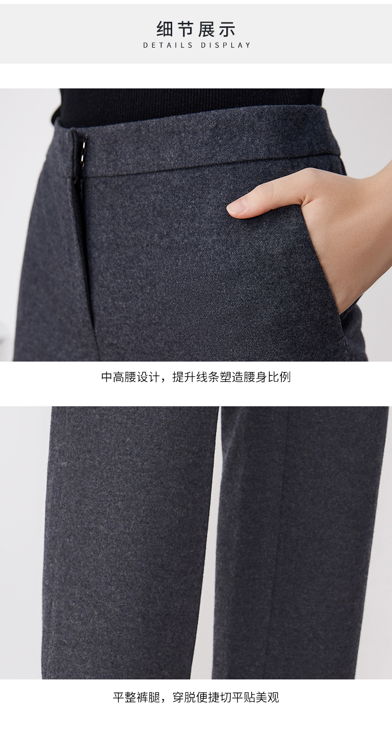 皮尔卡丹女装裤子西装裤深灰色羊毛西裤时尚显瘦女裤P3325T3959H0