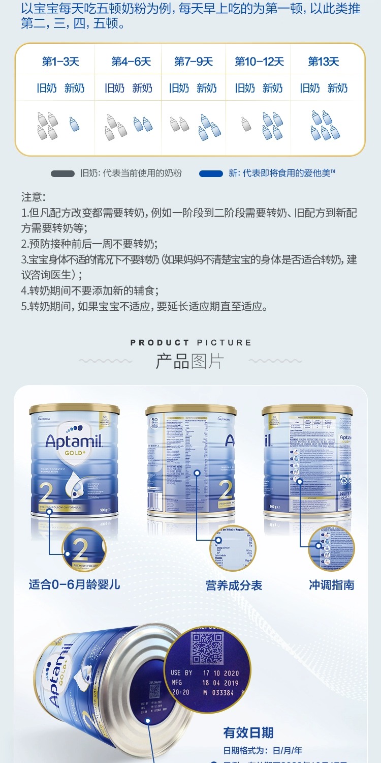 【中欧班列精选】HNMG 澳洲爱他美Karicare Aptamil奶粉 金装加强2段(6-12个月)900g 日期不断更新
