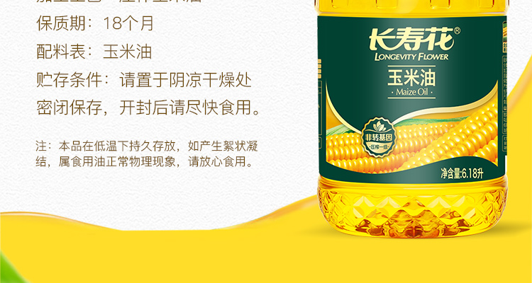 长寿花 食用油 非转基因 压榨一级玉米油(京东定制)6.18L