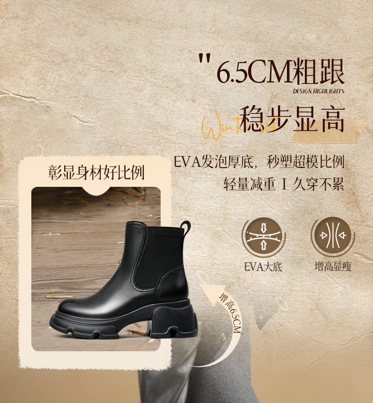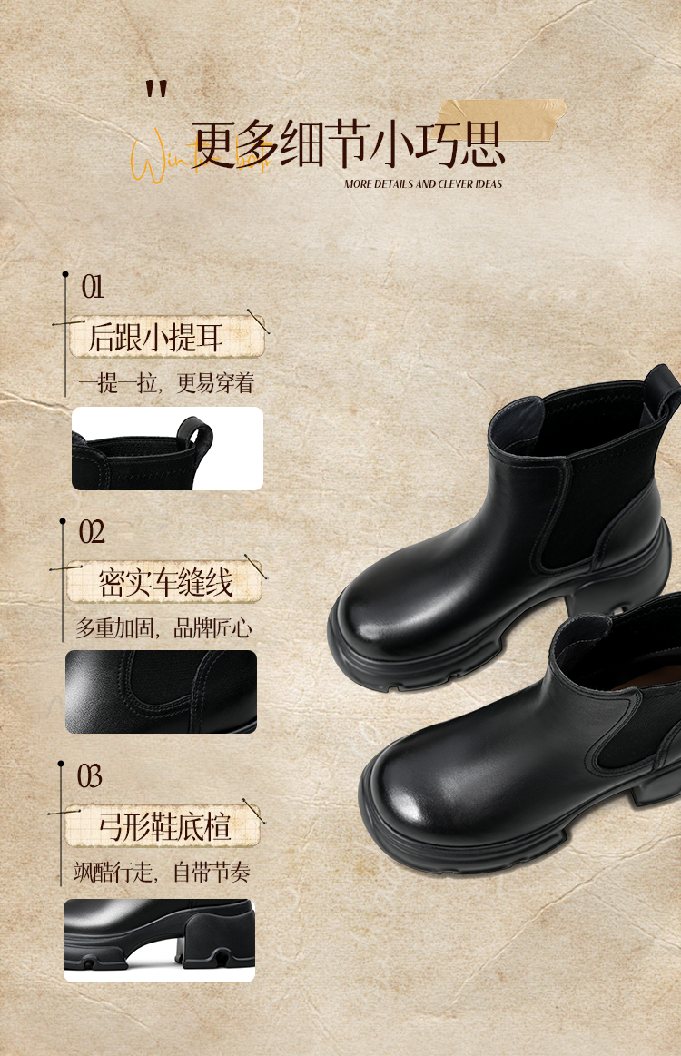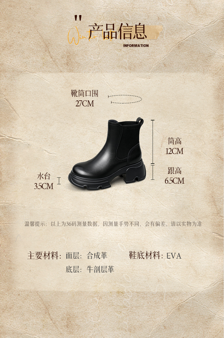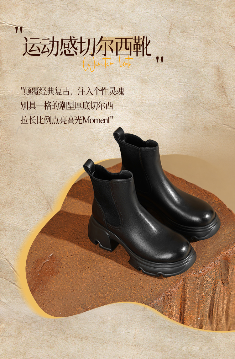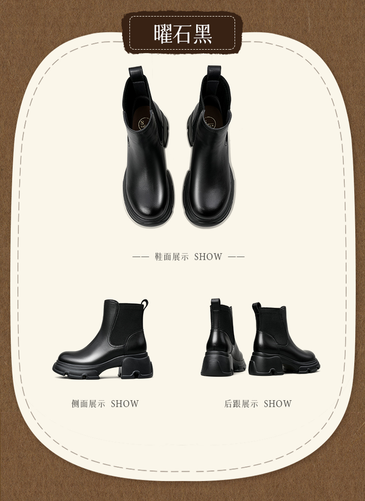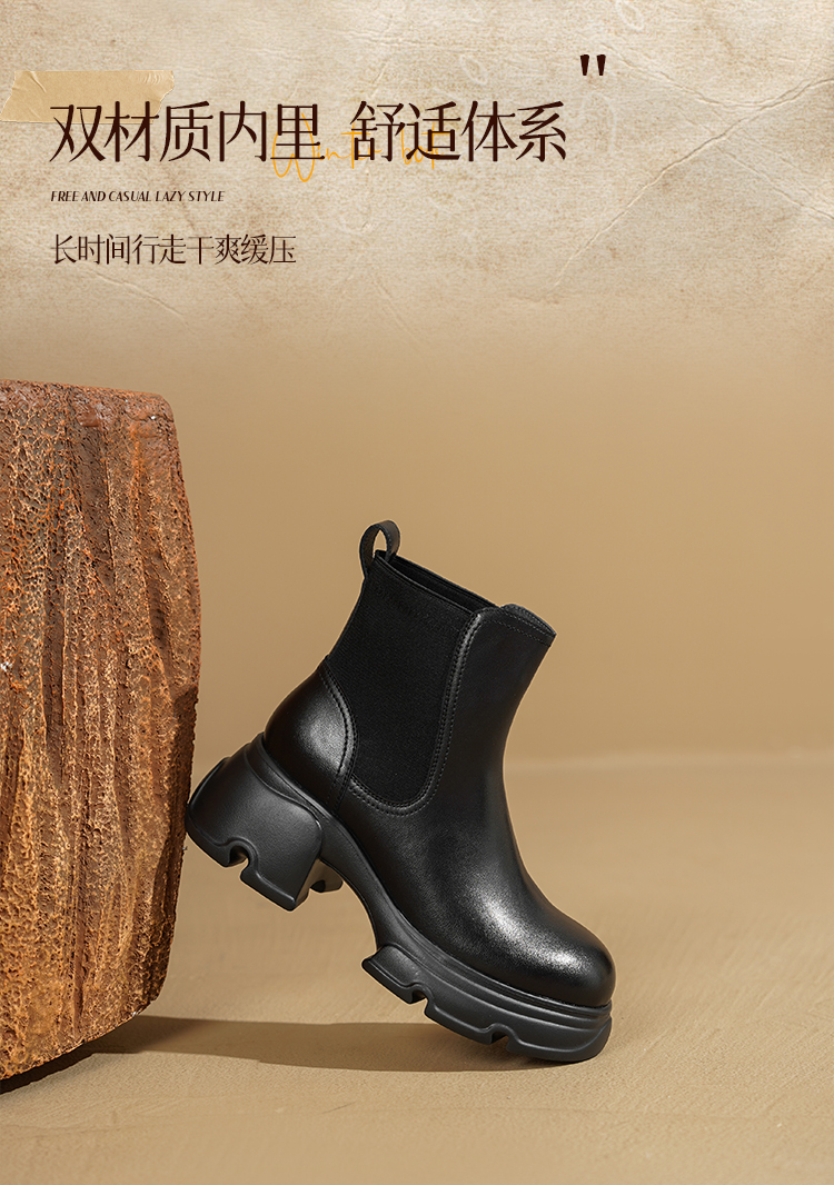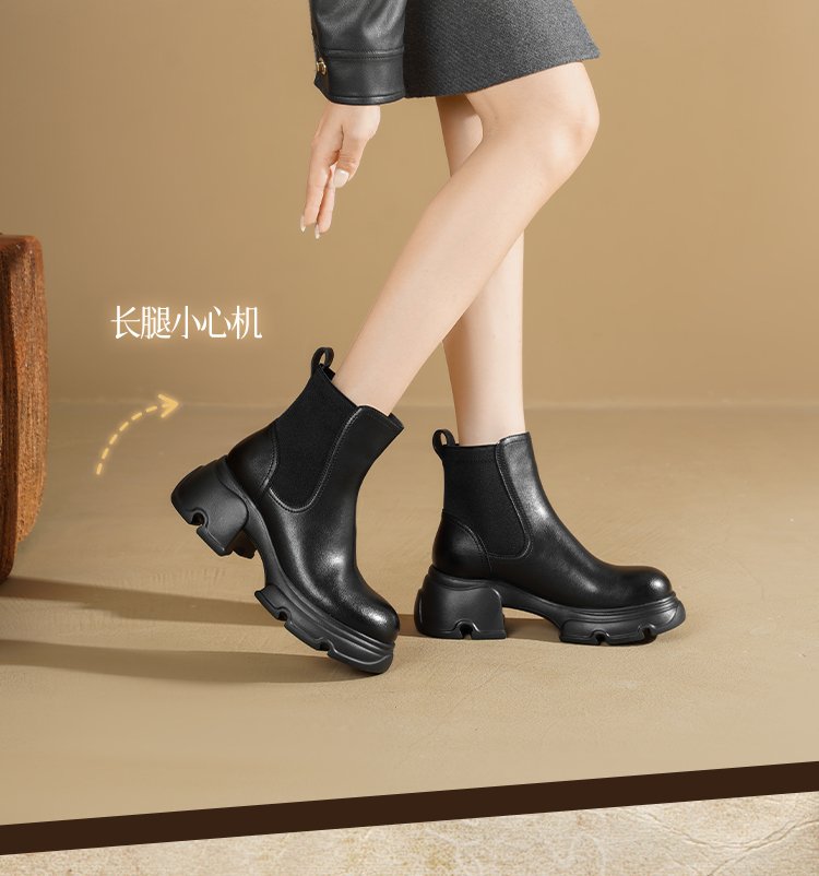 Safiya/索菲娅2025英伦风时尚厚底圆头百搭轻便增高切尔西靴SFD4116417