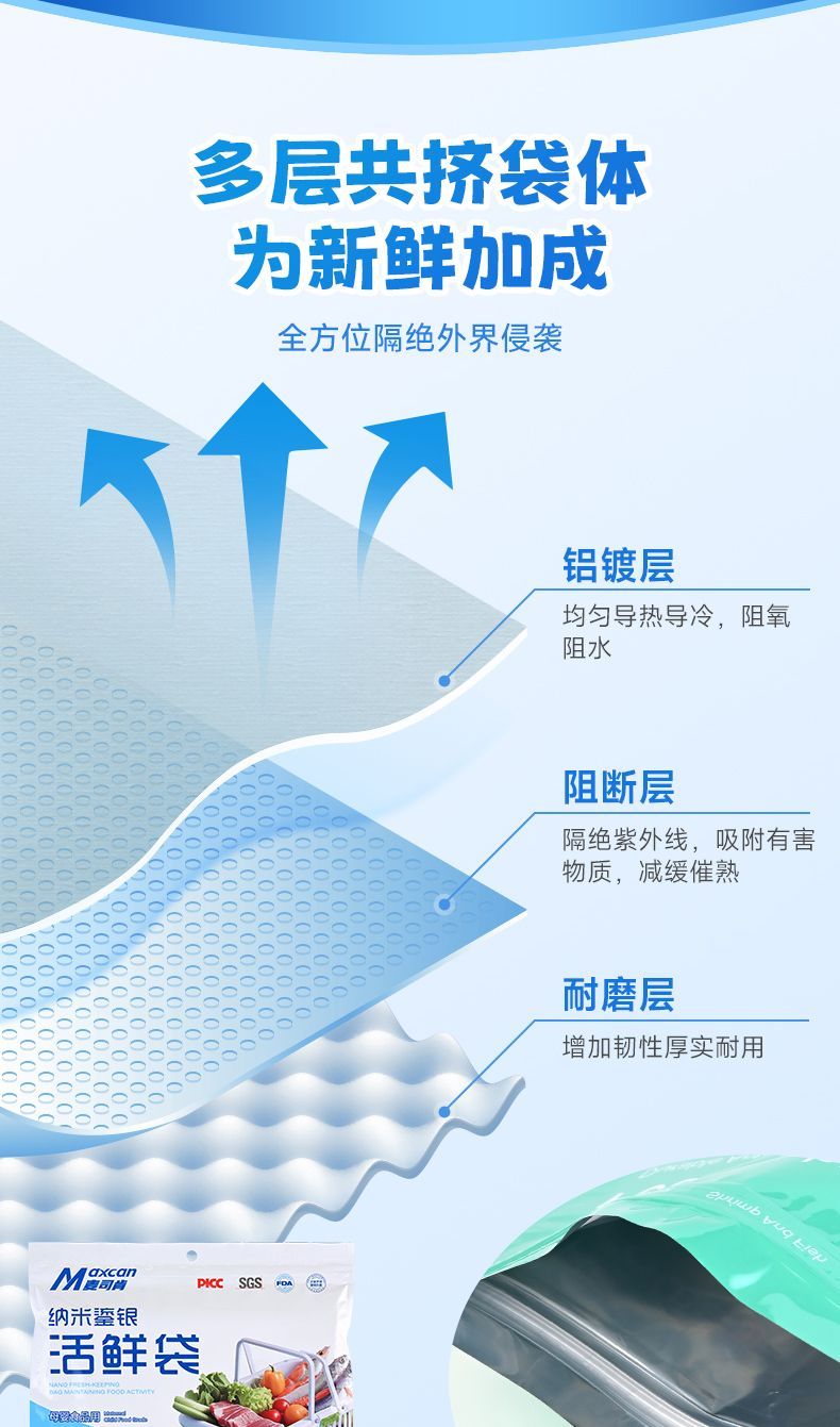 麦司肯冷冻活鲜袋 食品级保鲜袋密封袋加厚铝箔冰箱锁鲜收纳袋