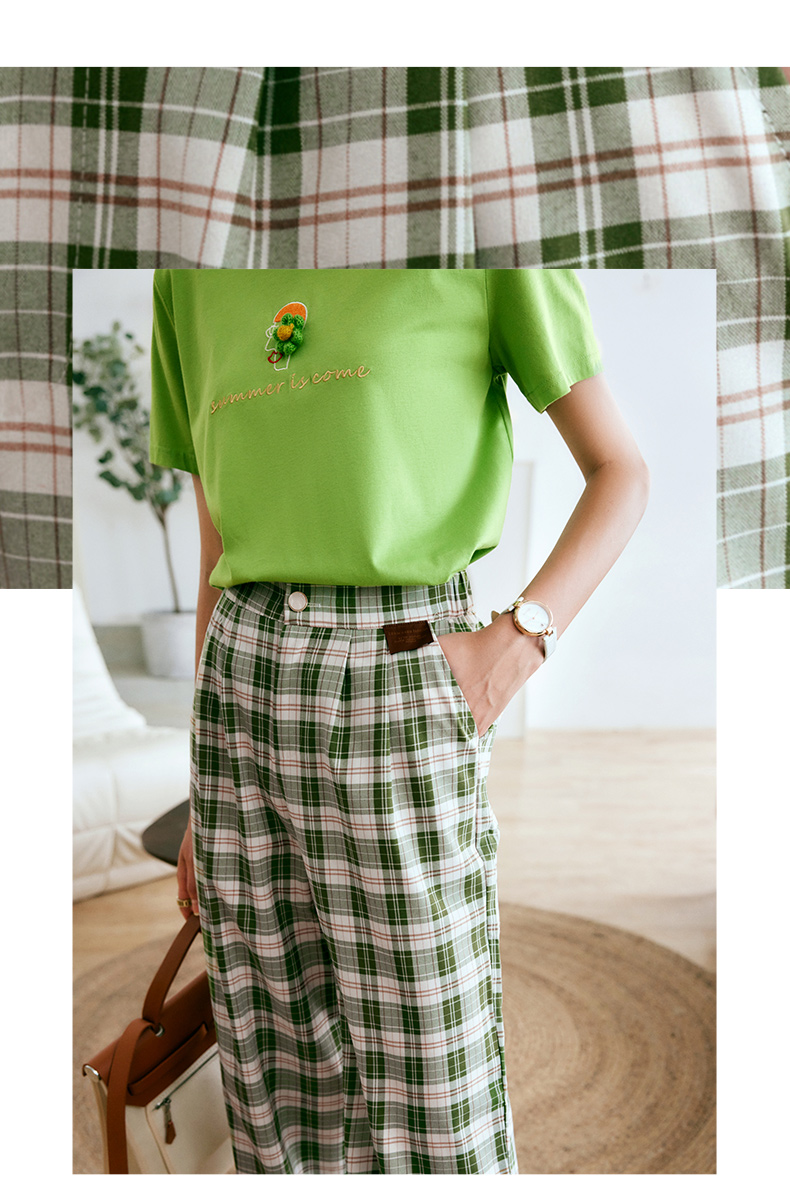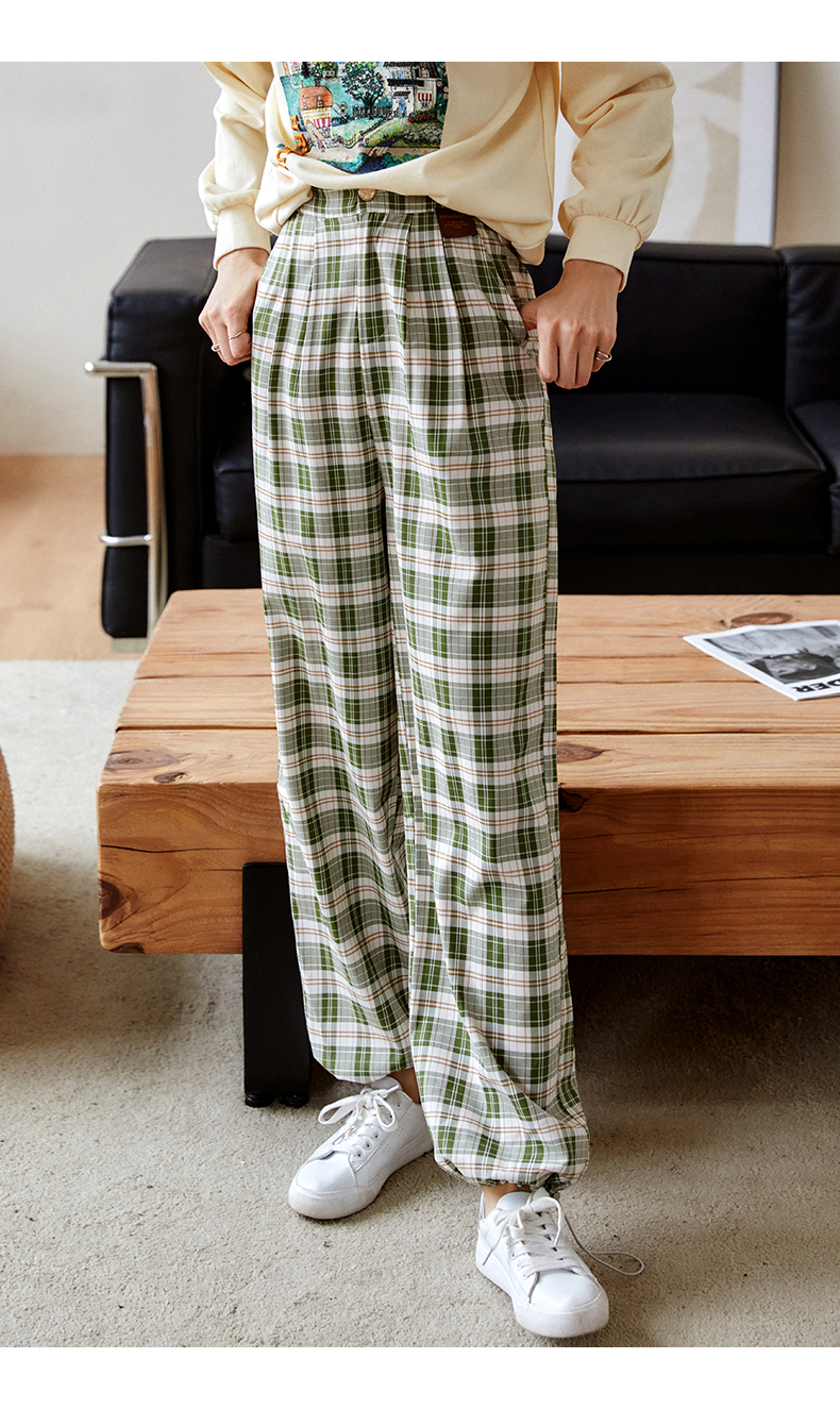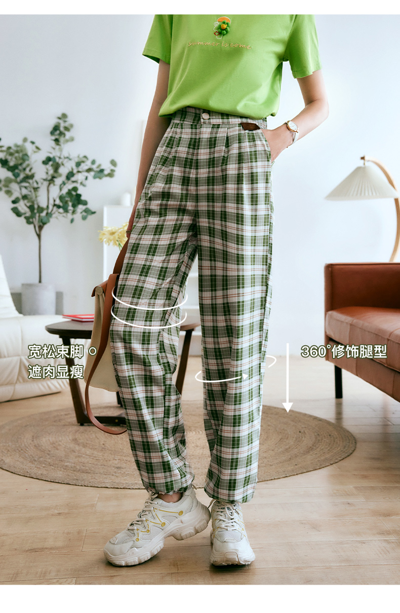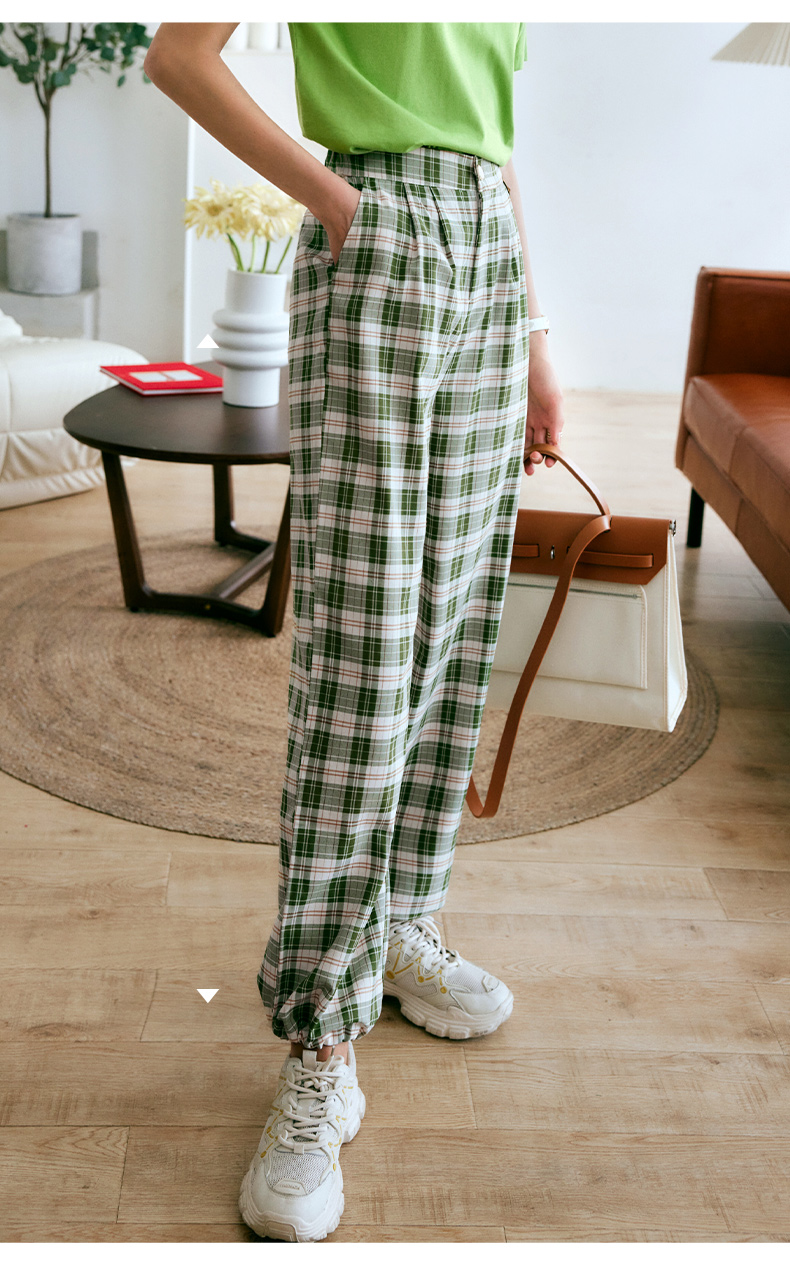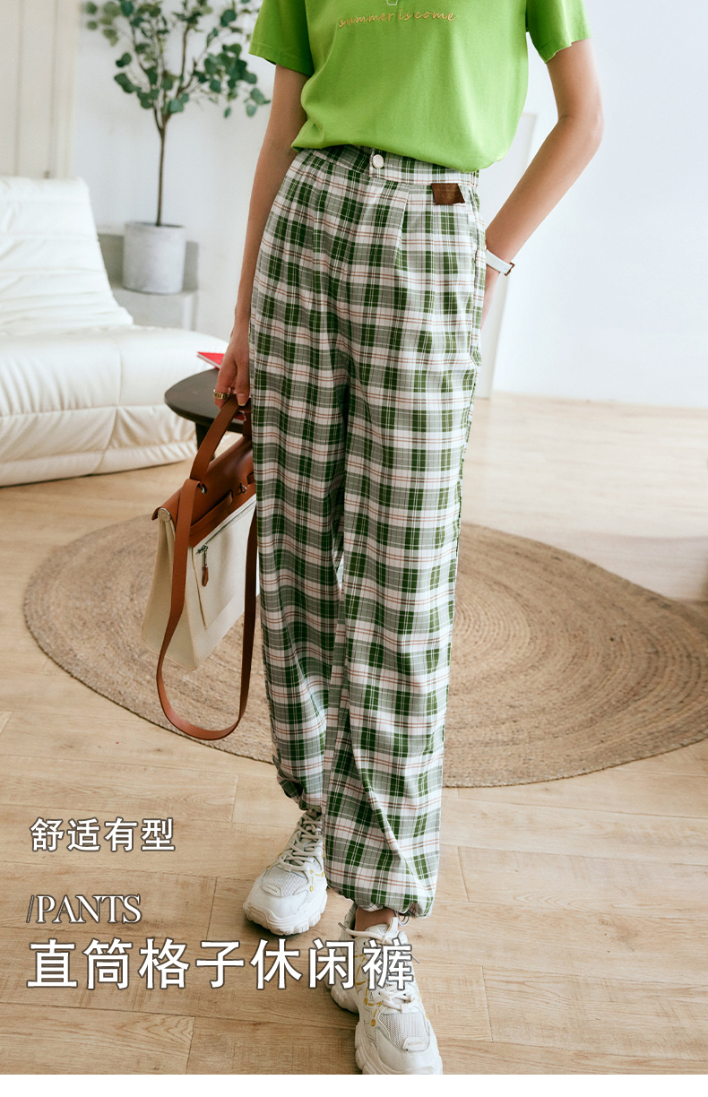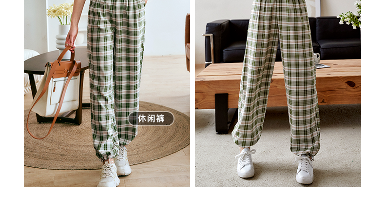 欧芮儿格子休闲裤女夏季2022年新款宽松薄款时尚运动阔腿百搭裤子