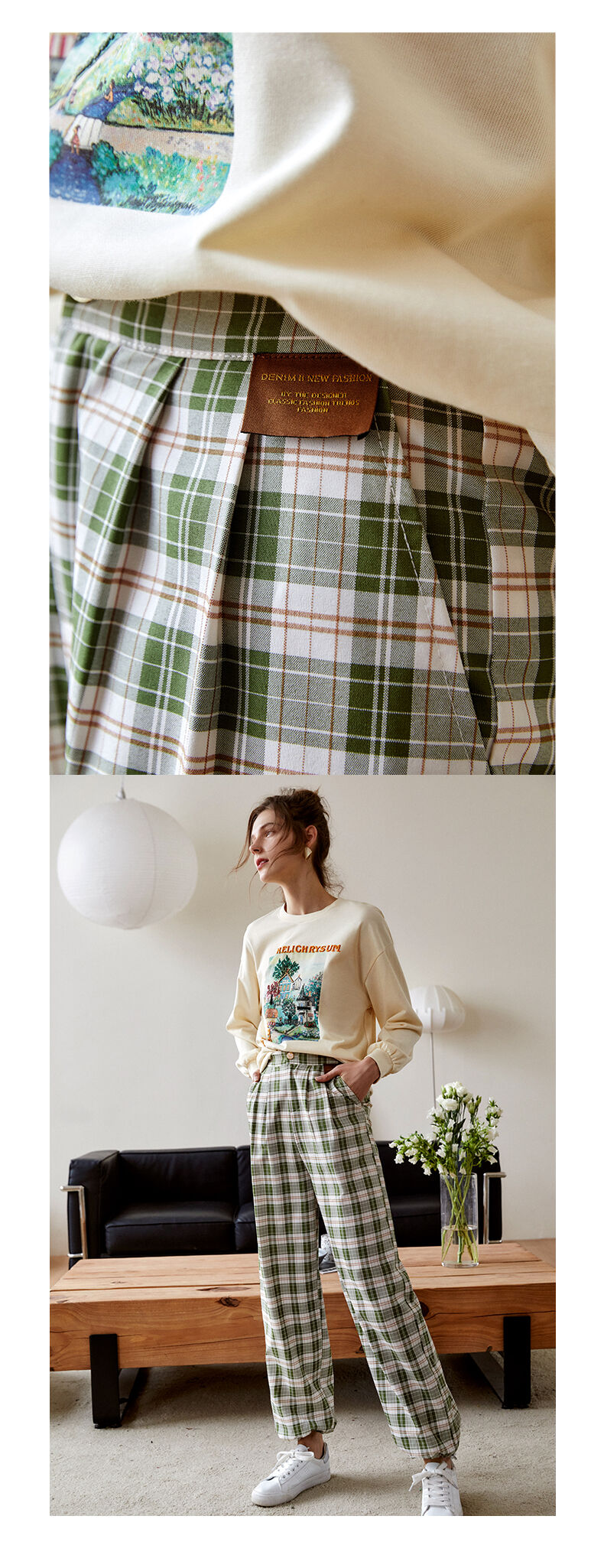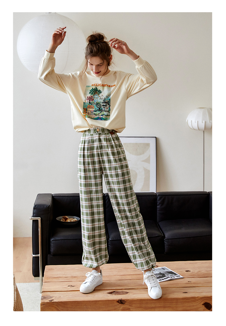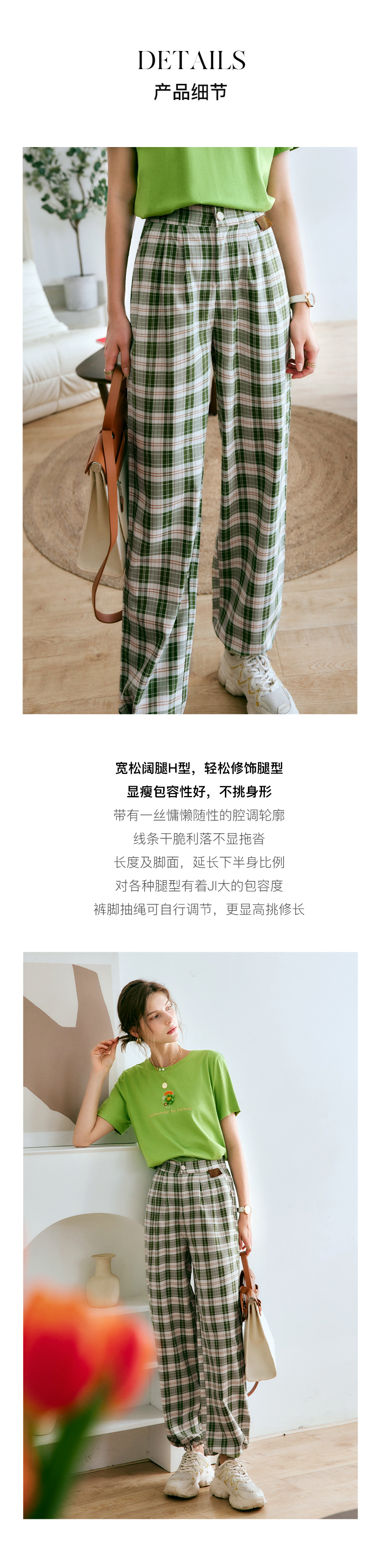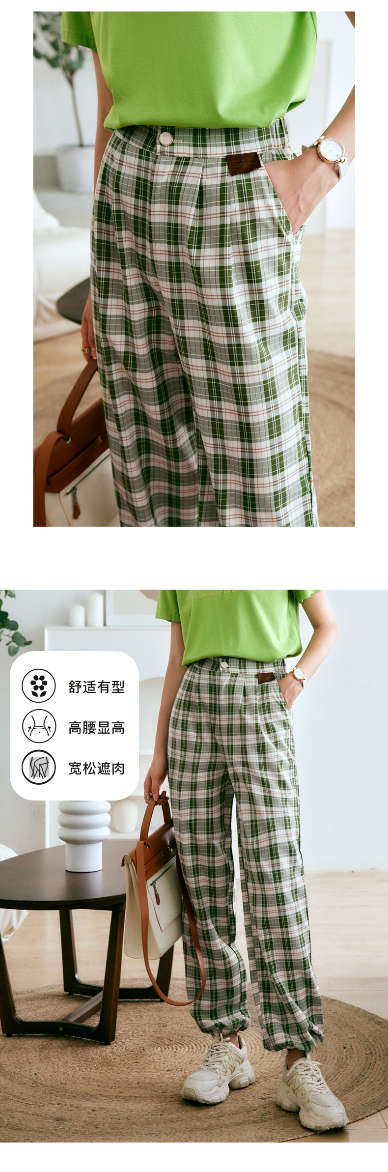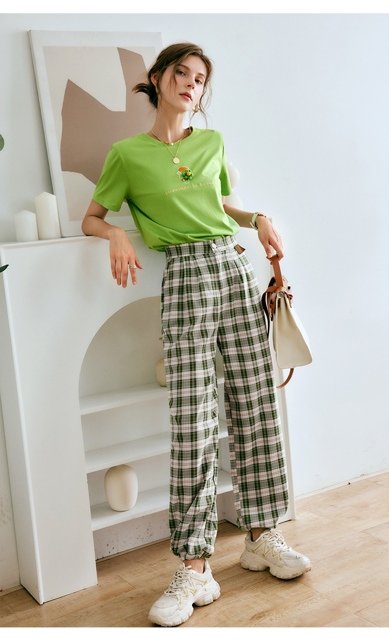 欧芮儿格子休闲裤女夏季2022年新款宽松薄款时尚运动阔腿百搭裤子