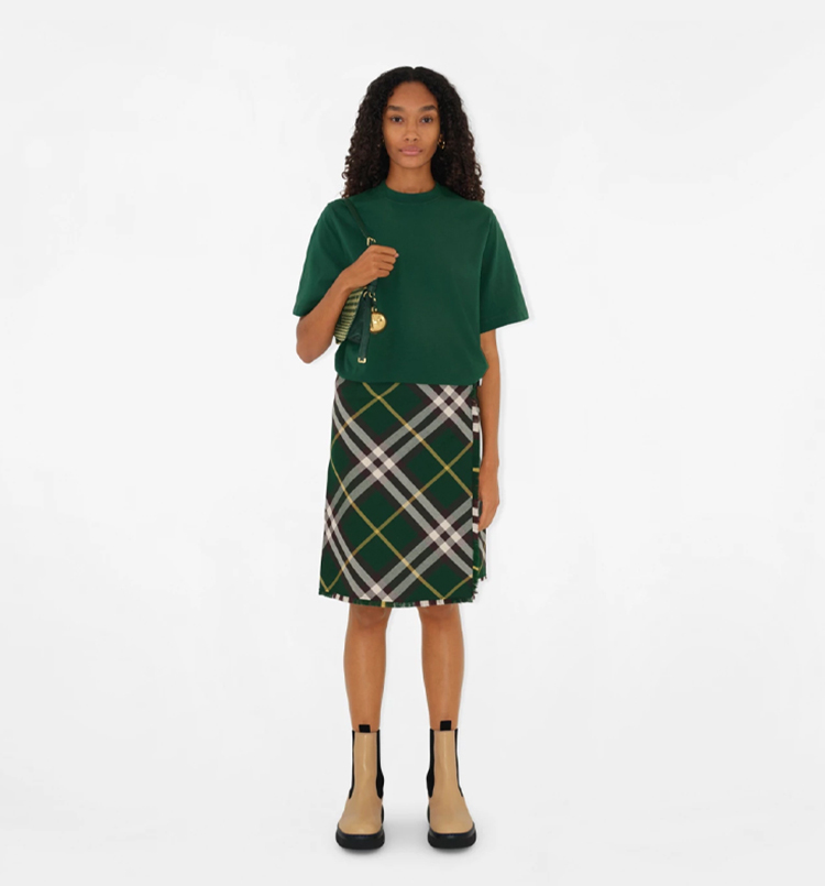 【一】BURBERRY 巴宝莉 女士马术骑士徽标棉质圆领短袖T恤 绿色 8079884 B8636