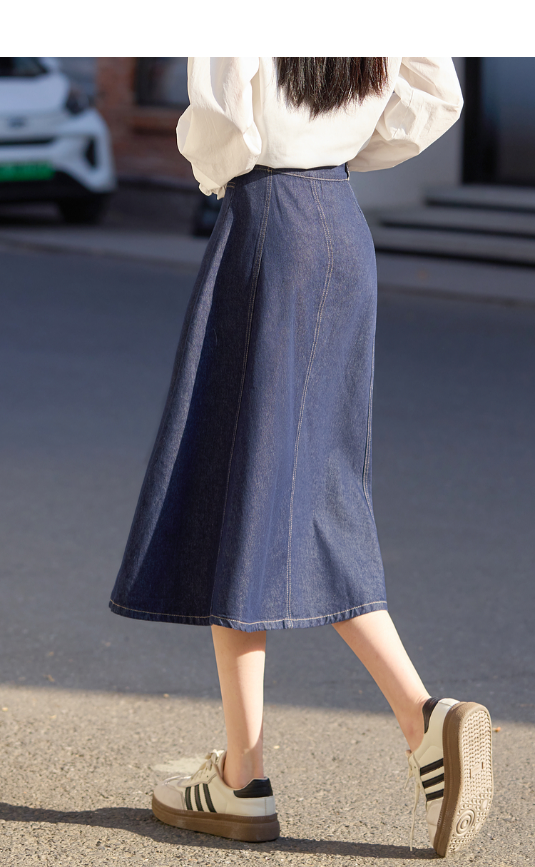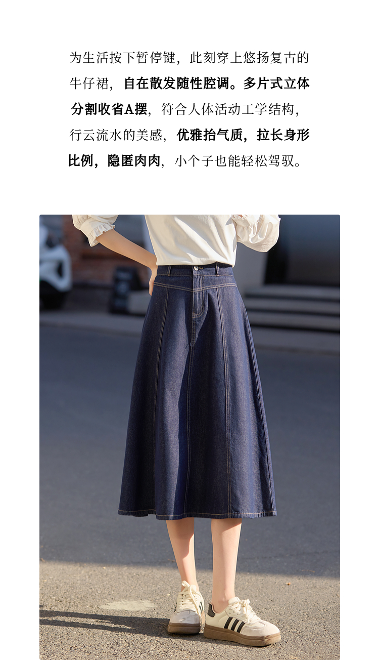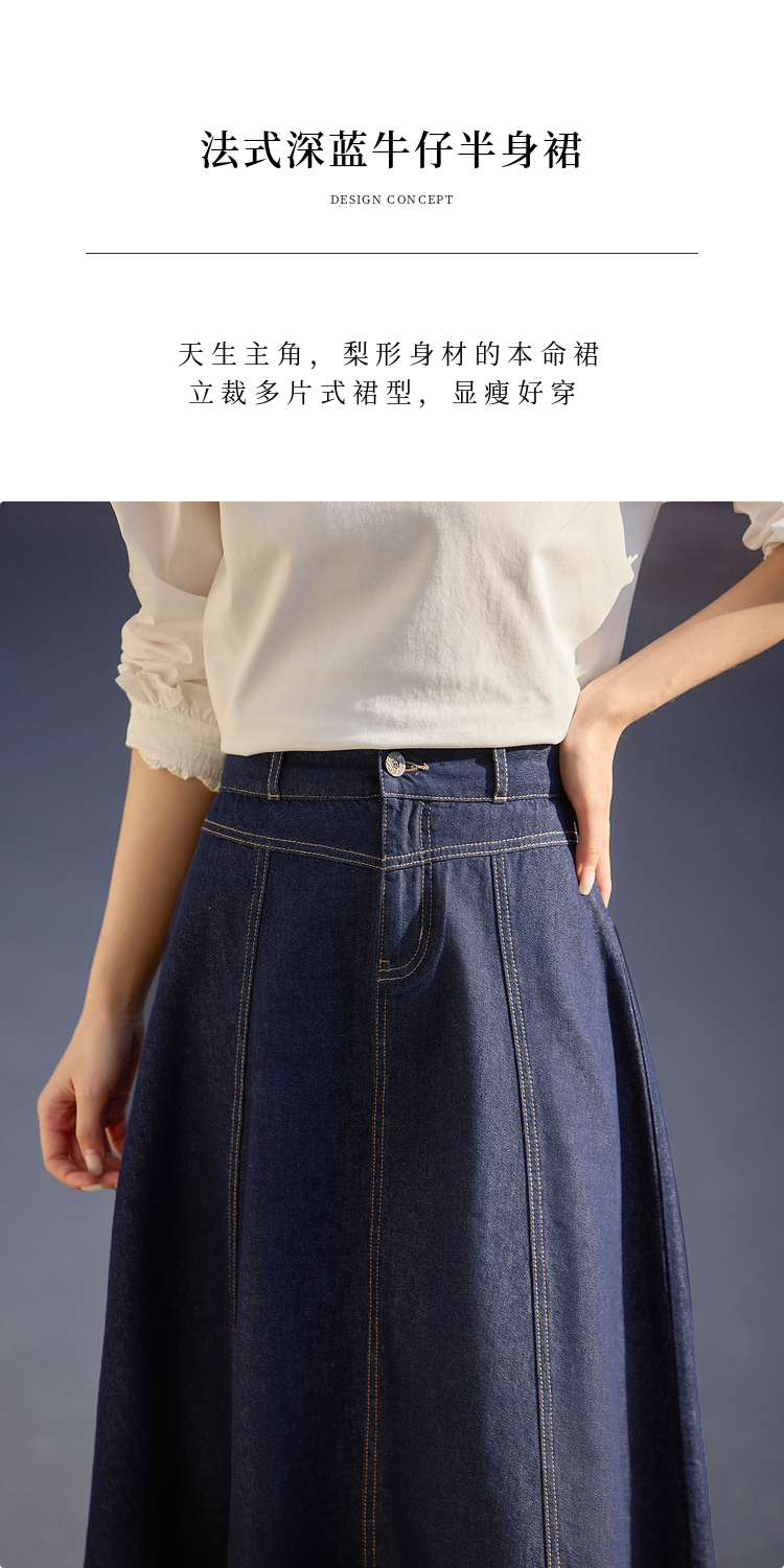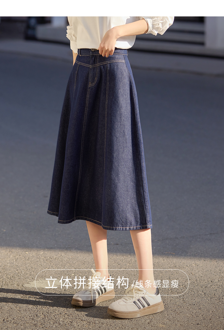 【专属特价】熙世界法式原色牛仔半身裙女2025春秋新款高腰显瘦中长裙A字伞裙