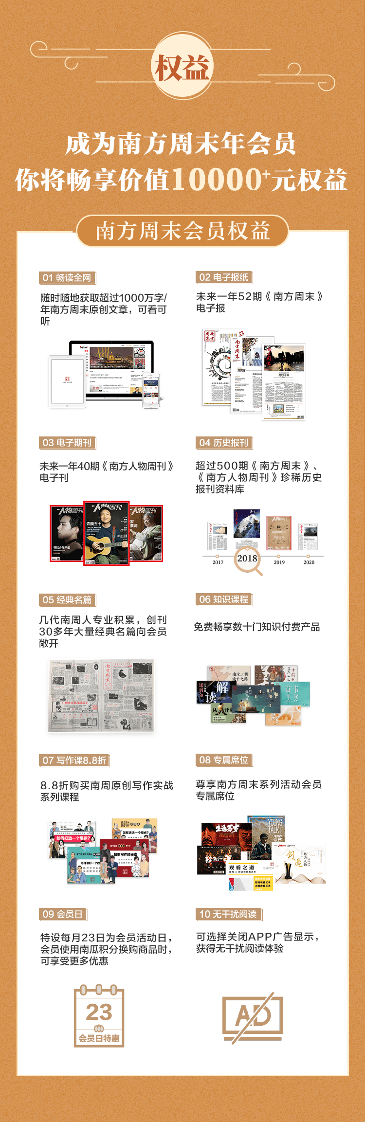 下载南方周末App,使用预留手机号登录即可享受会员权益。