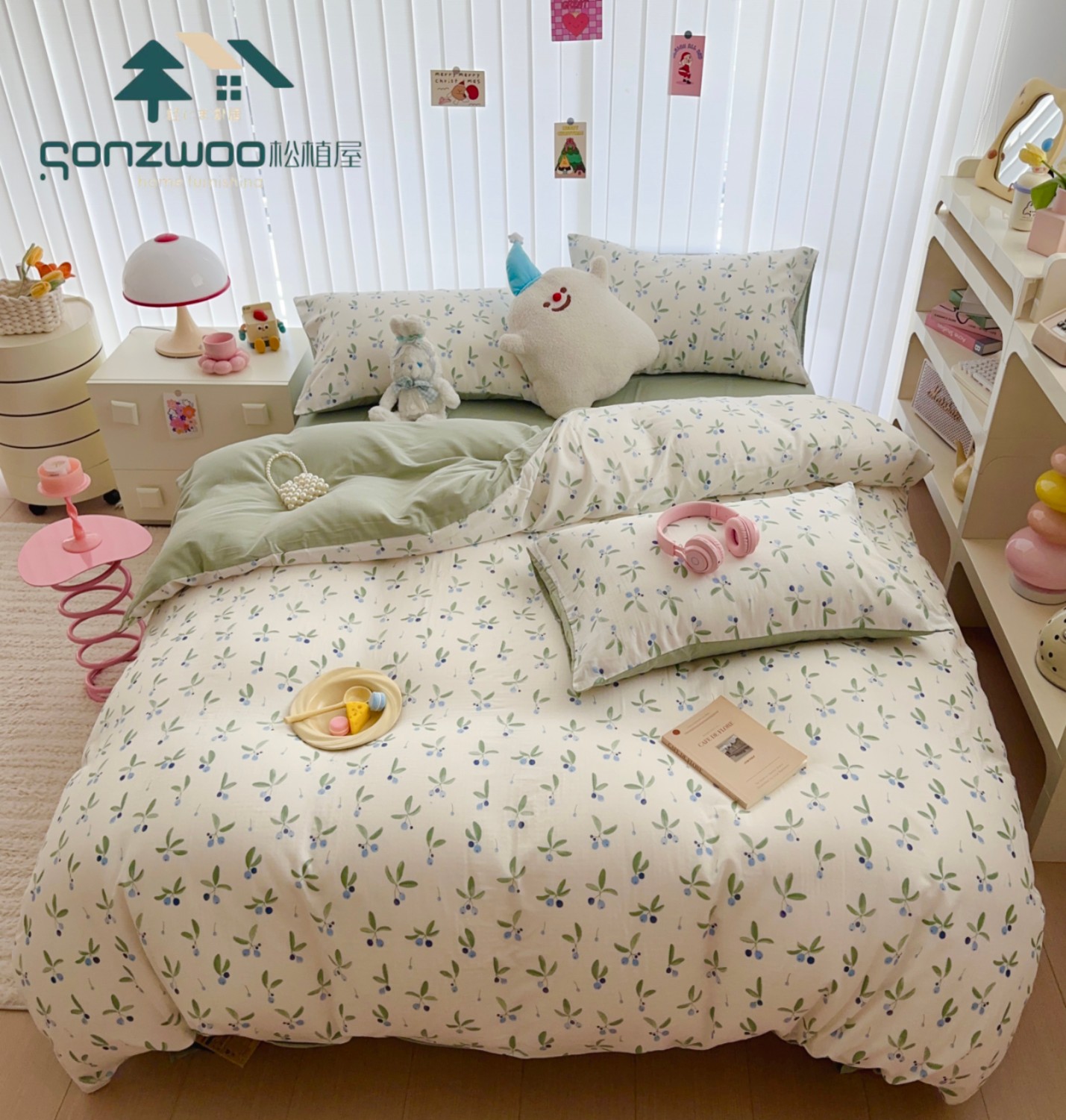松植屋全棉有氧双层纱四件套 A类婴儿级裸睡标准、100%全棉双层纱 呵护你的每一寸肌肤