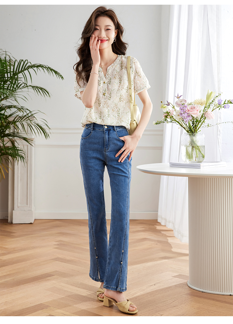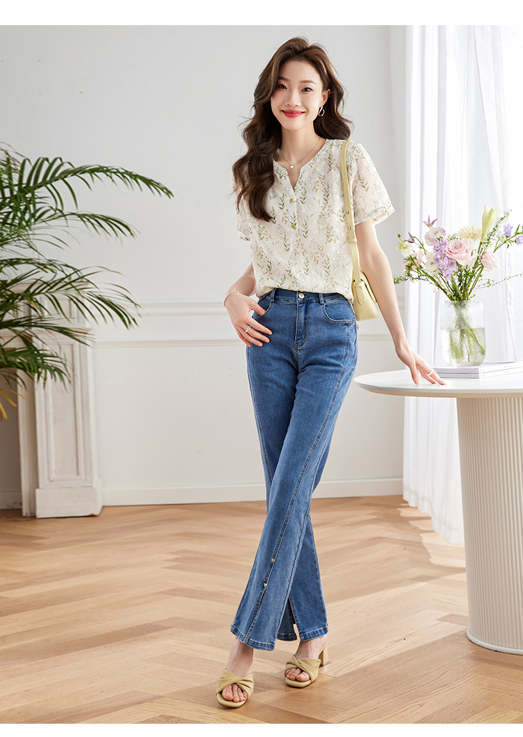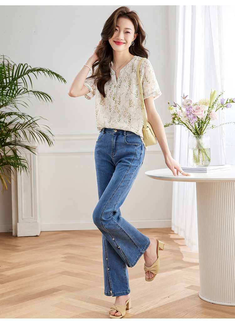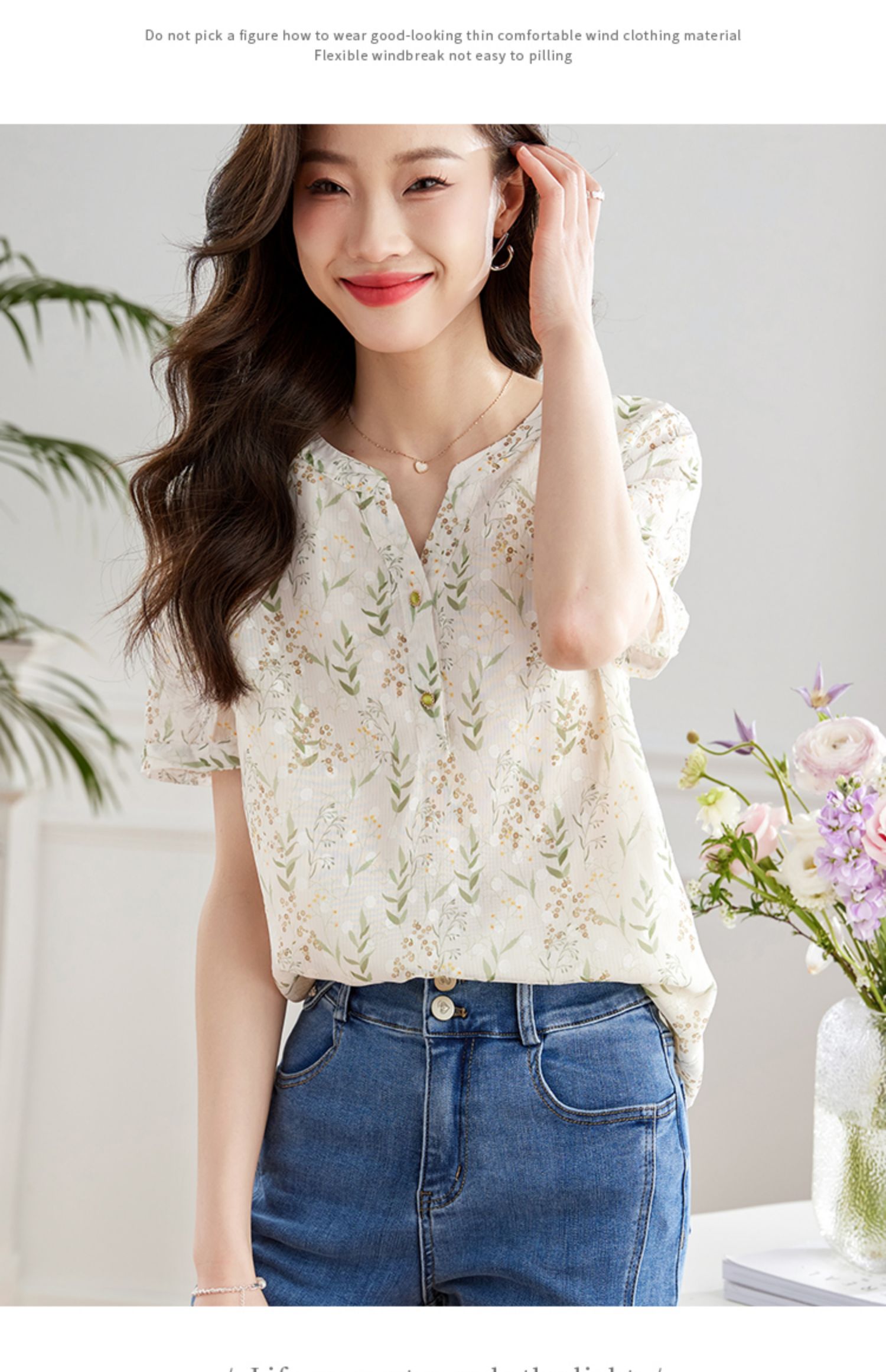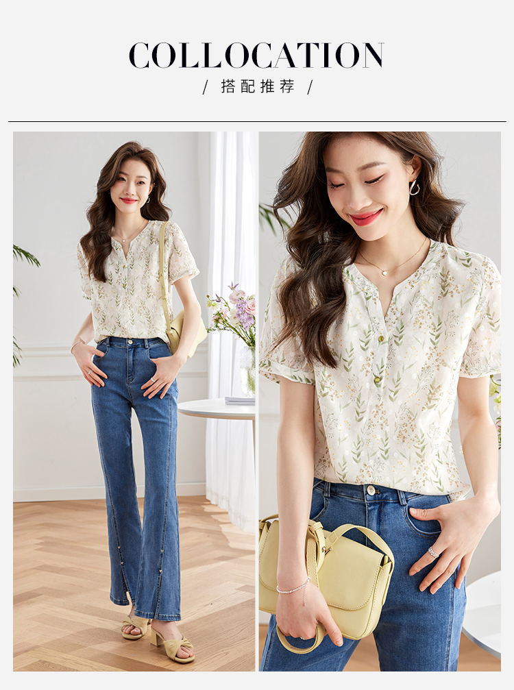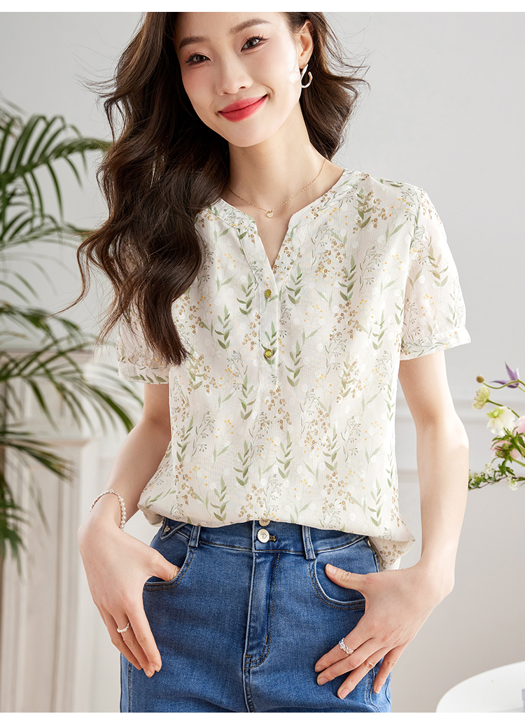 【专属特价】熙世界2025夏季新款法式碎花雪纺衫上衣时尚女装时髦洋气短袖小衫
