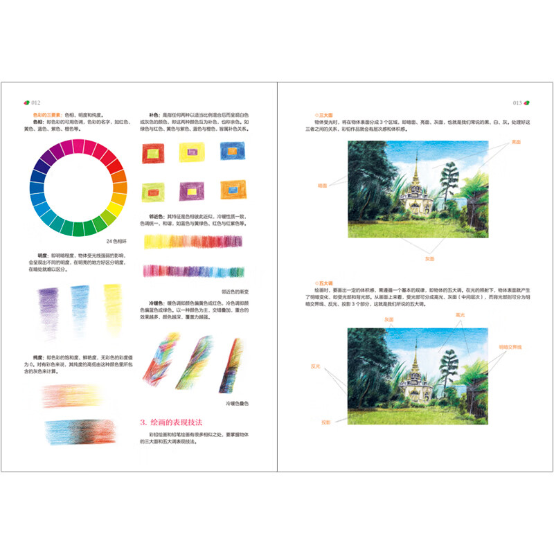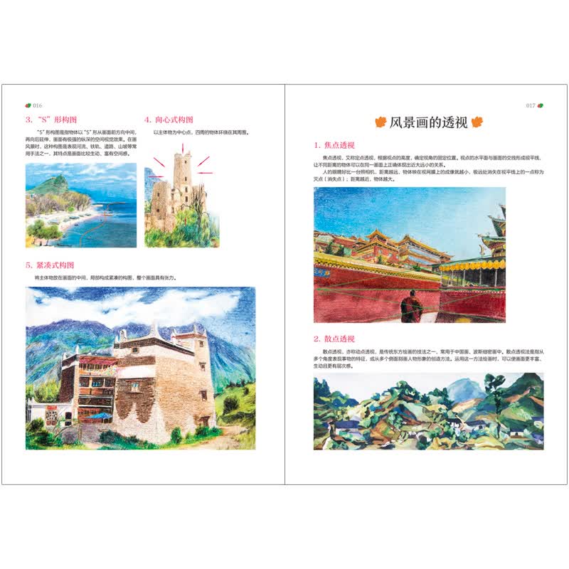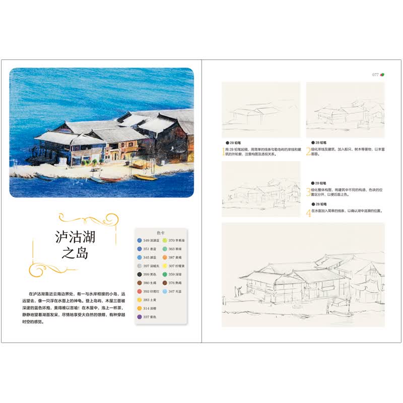 全书案例丰富,以色彩浓郁的风光景色为主要绘画对象,有五彩斑斓的瑶池玉盆的九寨溪水、云霄佛光的峨眉山、青翠晶莹的泸沽湖、秀峰延绵的石林、神秘清净的色达、世外桃源的普者黑、异域风情的瑞丽傣寨……这些风景符合初学者辨识颜色和调和颜色的学习要求。书中丰富的内容,细致的讲解,高清的配图,让读者可以把身边的风景变成一幅幅具有作品感的彩铅画。