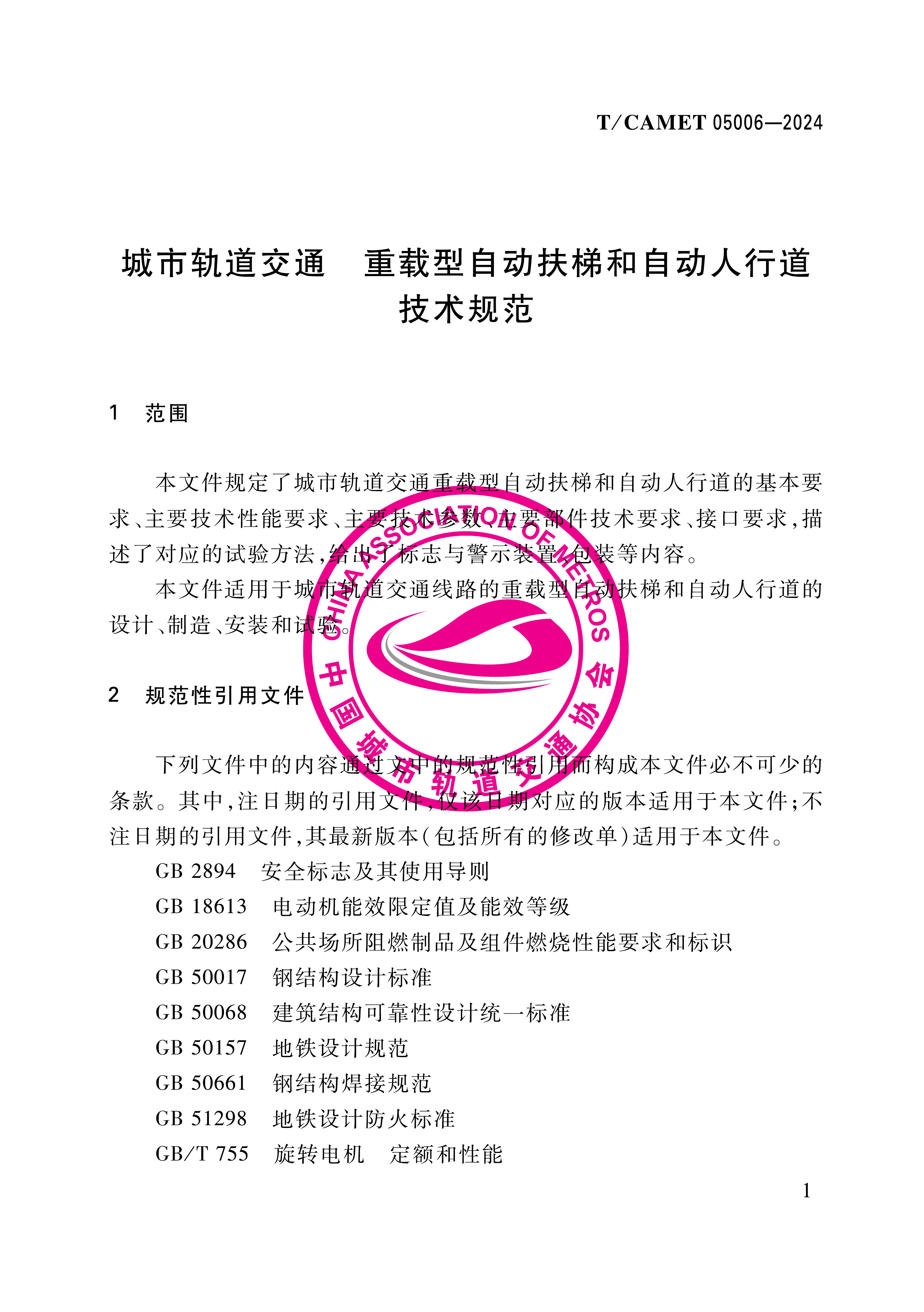 7130 城市轨道交通 重载型自动扶梯和自动人行道 技术规范(T/CAMET05006-2024)