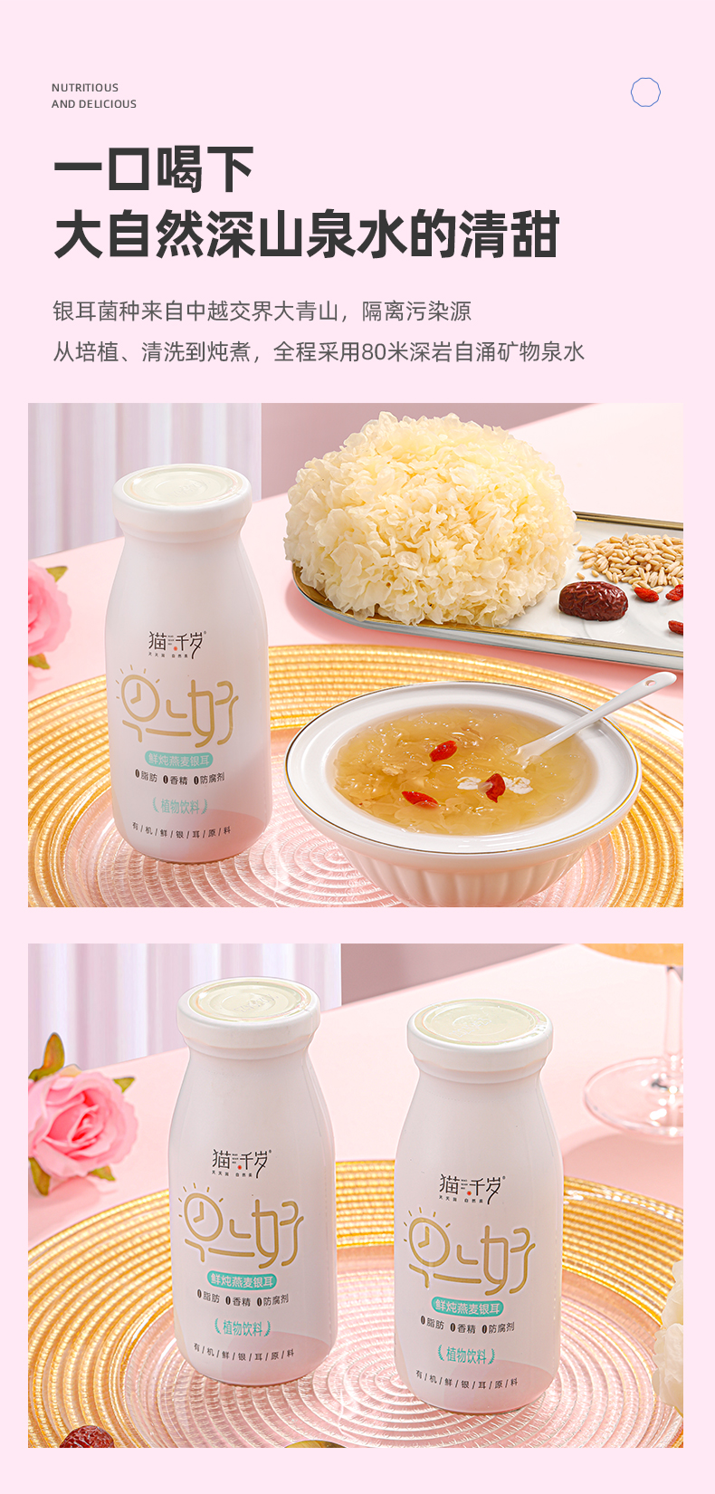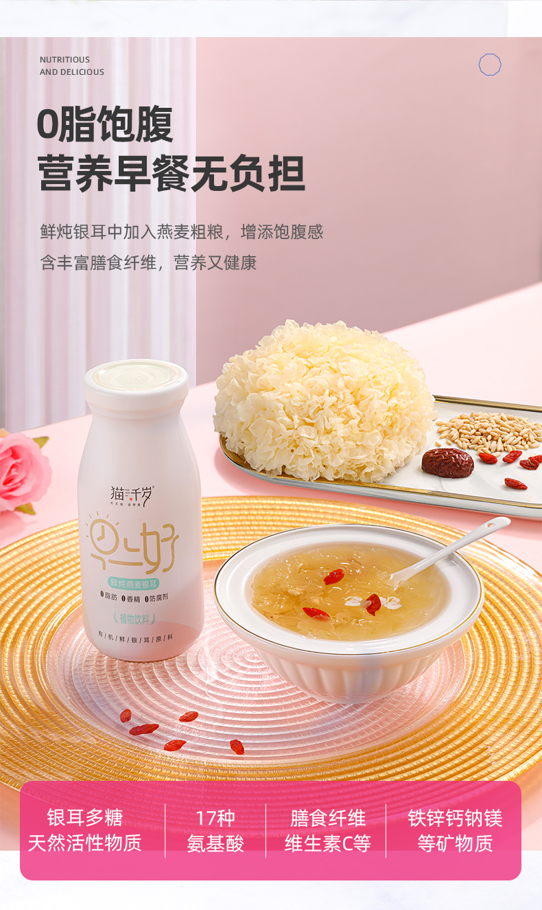 【猫千岁丨燕麦银耳羹】甄选新鲜有机银耳!胶质满满,汤汁浓郁顺滑!入口即化,搭配Q弹爽滑的燕麦粒!香甜不腻,清新软糯,营养无负担!开盖即食,简单方便!220ml*6瓶!【MQS-X仓】