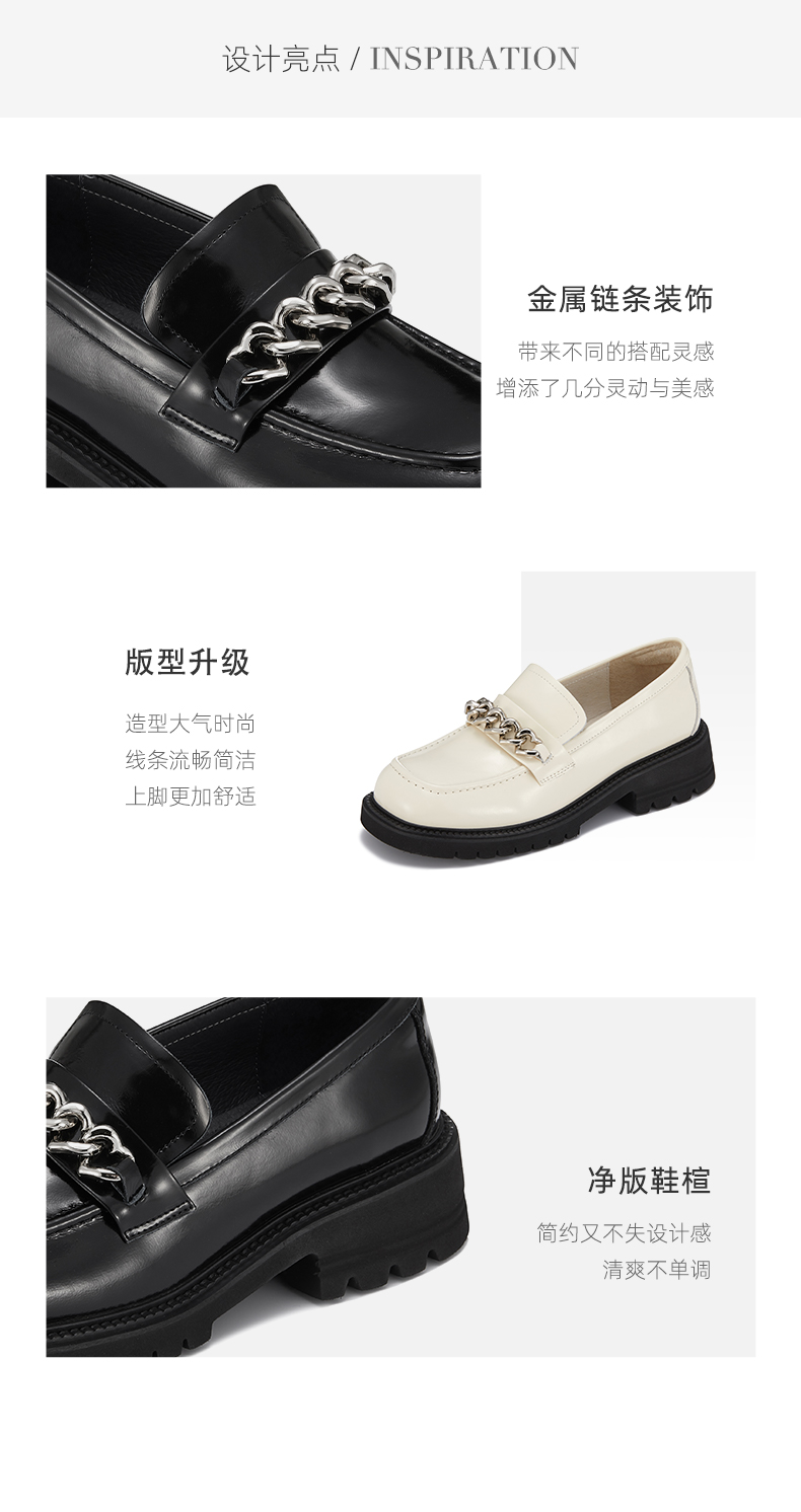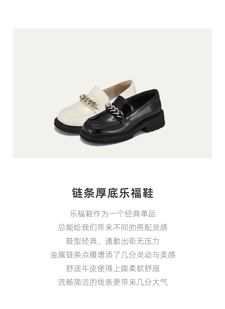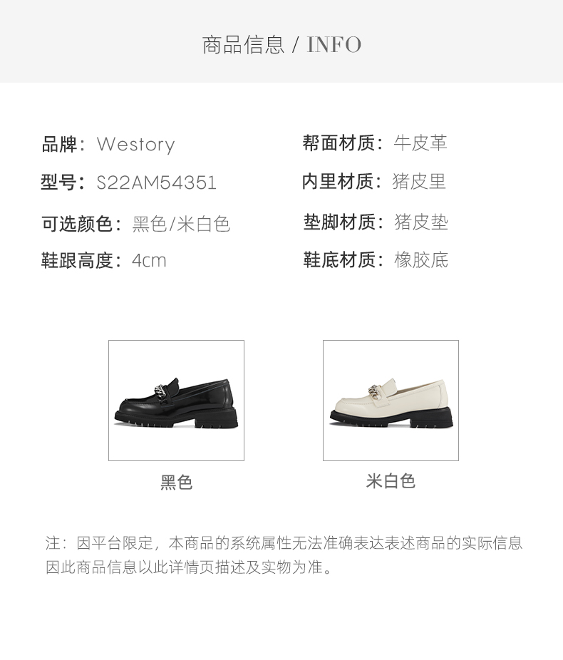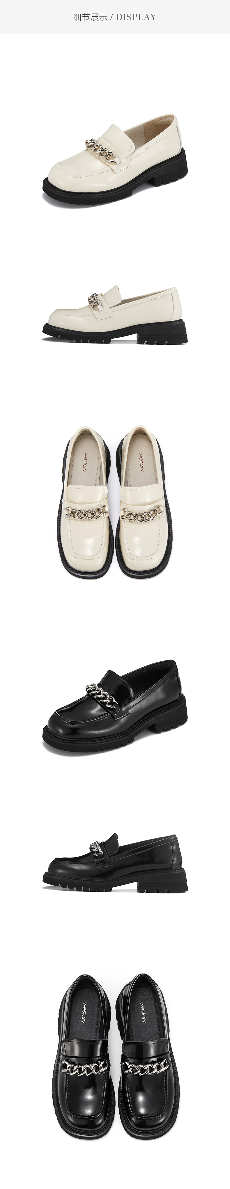 westory春季新款厚底一脚蹬乐福鞋链条中跟圆头单鞋女时尚松糕底S22AM54351