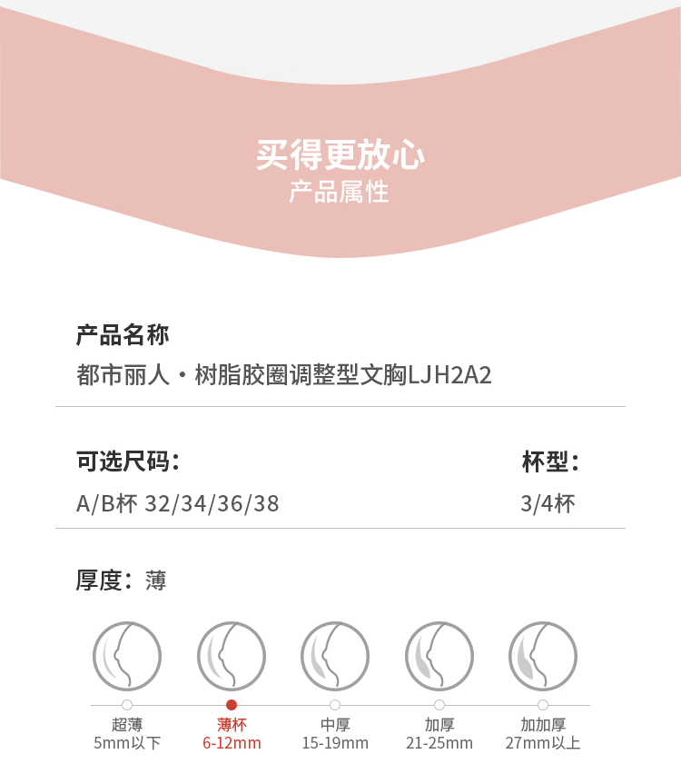 都市丽人舒软挺塑调整型文胸薄蕾丝树脂胶圈塑身文胸LJH2A2