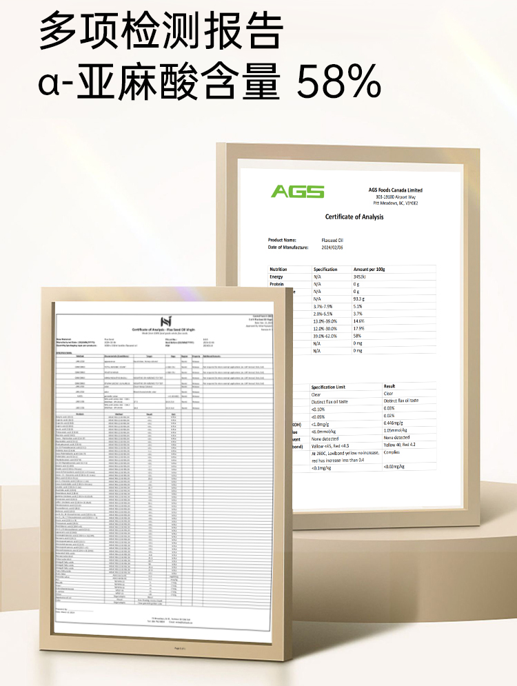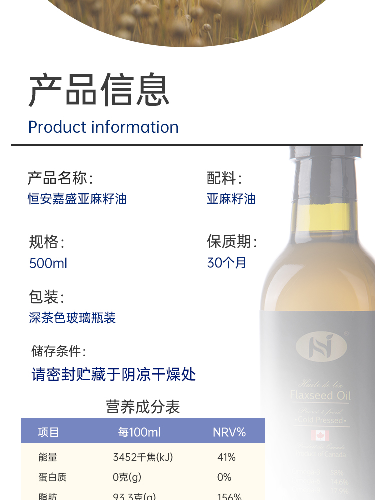 加拿大 恒安嘉盛亚麻籽油 500ml 保质期:2027.2.22
